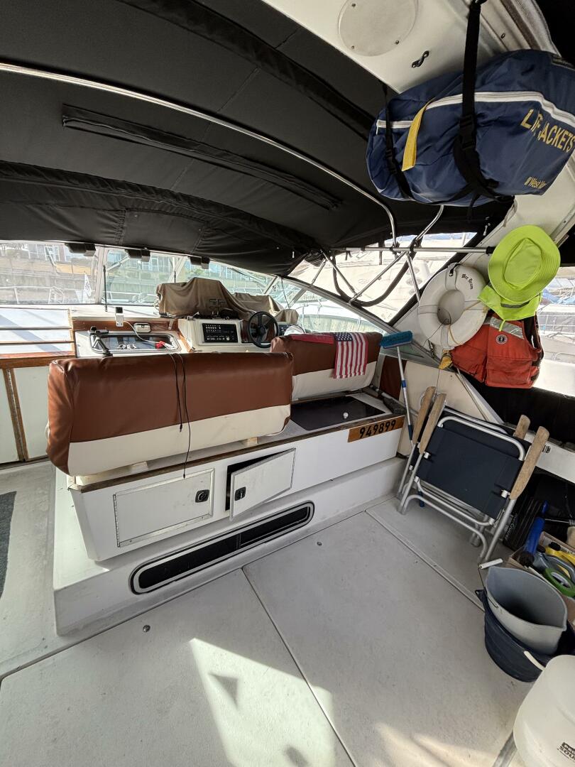 Her roomy cockpit with double helm seating, aft-facing lounge, and convertible transom seating makes her ideal for entertaining guests dockside or while underway. Below, the inviting cabin layout features a fully equipped galley, a private forward stateroom, convertible dinette, and a mid-cabin lounge that converts to an additional berth - allowing comfortable overnight accommodations for up to six.