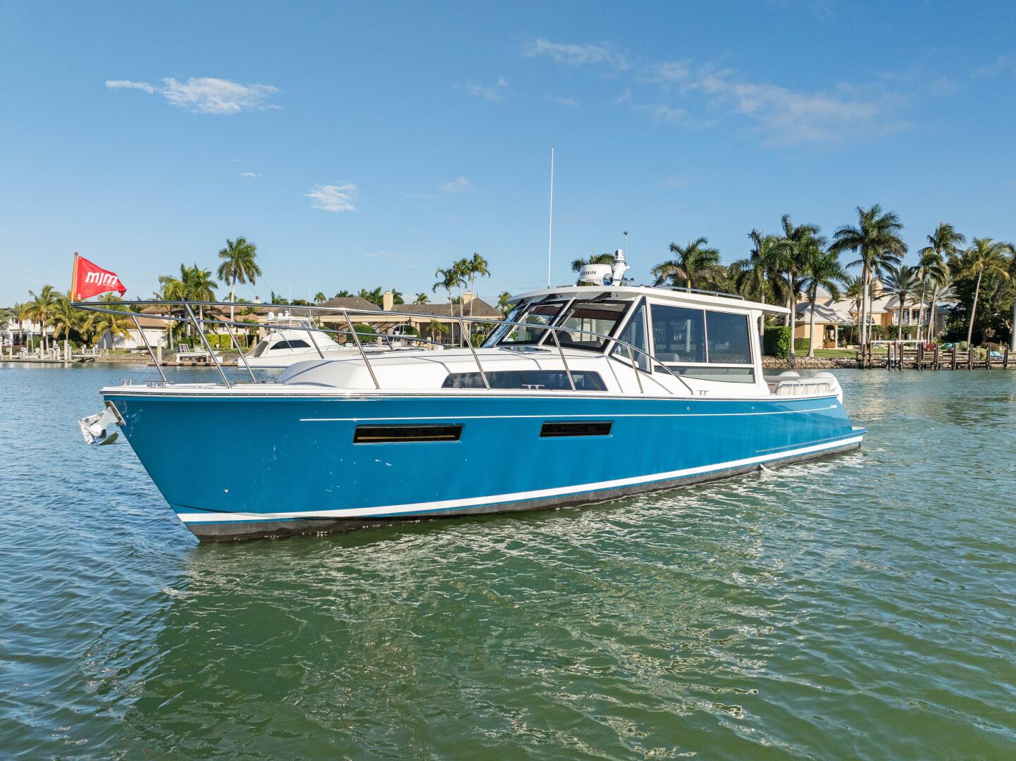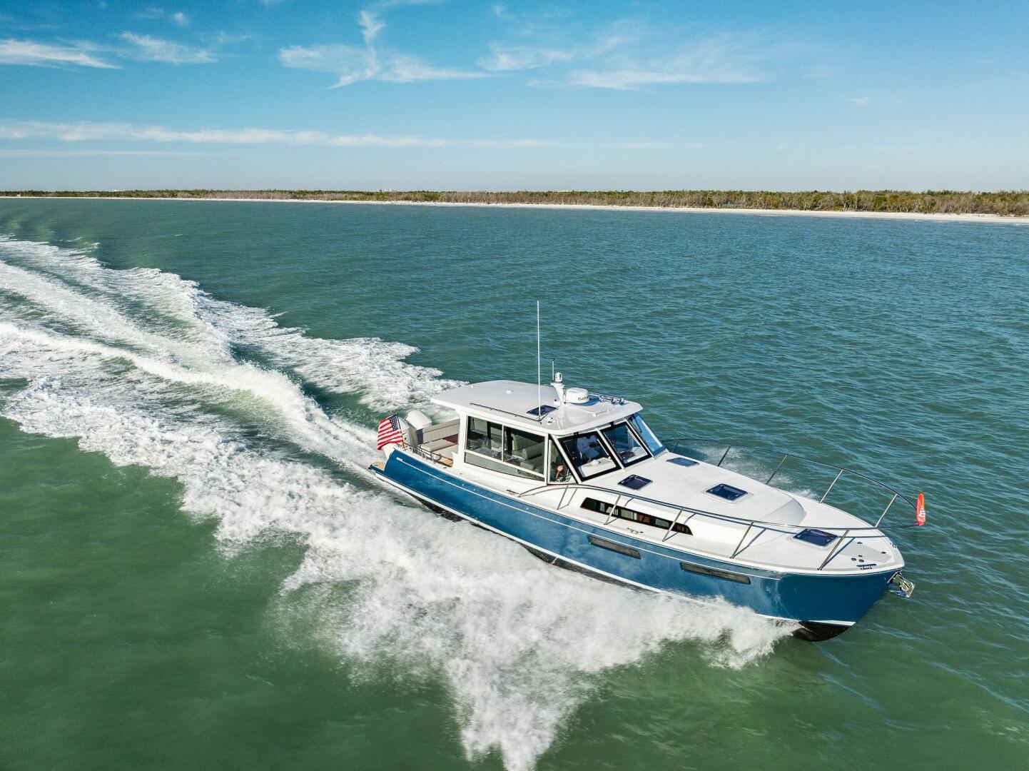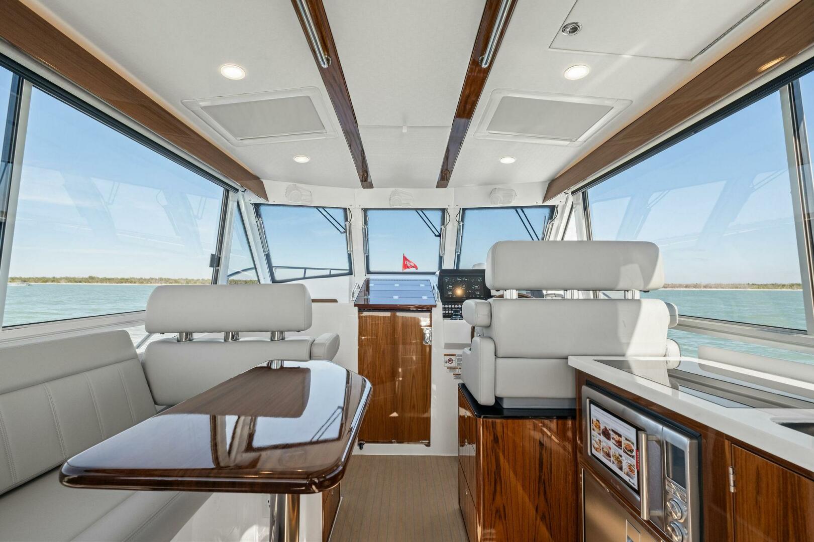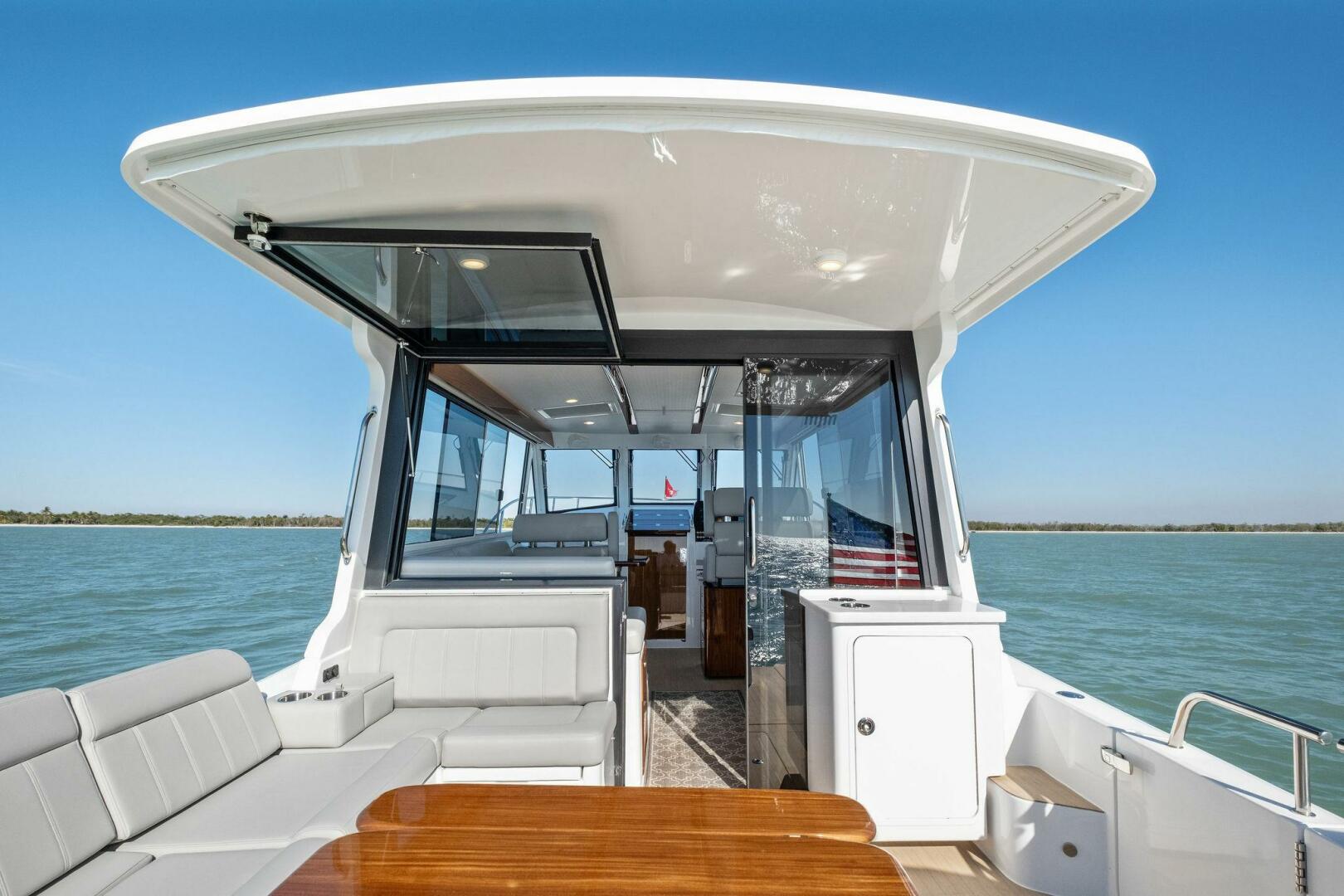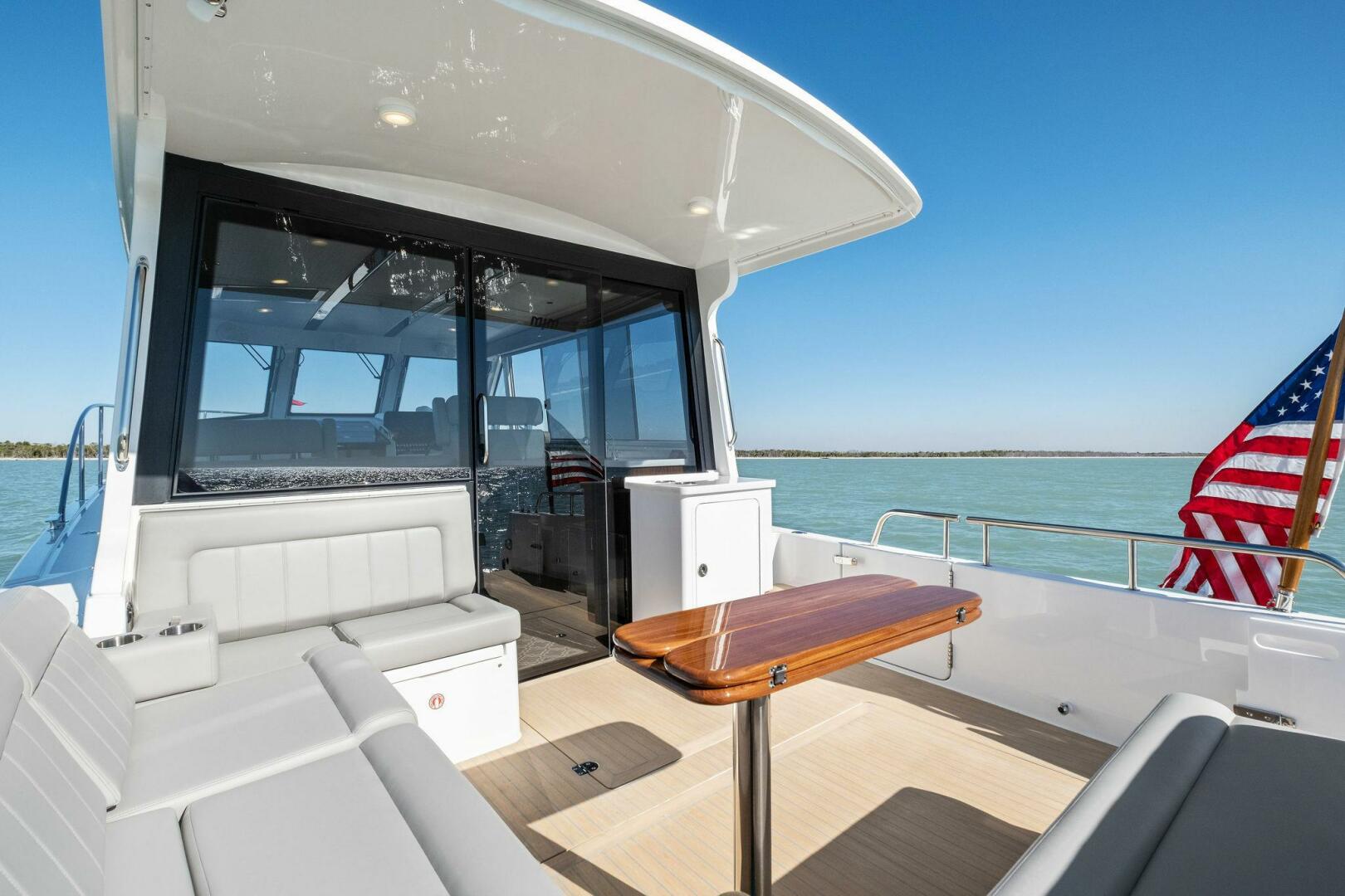 Rooted in classic Downeast style and elevated by modern luxury, this 2026 MJM 47R cruiser is designed to move effortlessly from daytime entertaining to unforgettable overnight escapes. Expansive social spaces invite relaxed gatherings at the dock or spirited cruising offshore, while refined details—from high-gloss teak accents and Ultraleather upholstery to a bright white pilothouse—create an atmosphere of timeless sophistication. Below deck, thoughtfully designed accommodations deliver the comforts of home, featuring a generous convertible berth, ample storage, and a fully equipped head with shower, allowing weekends on the water to extend with ease and comfort.
