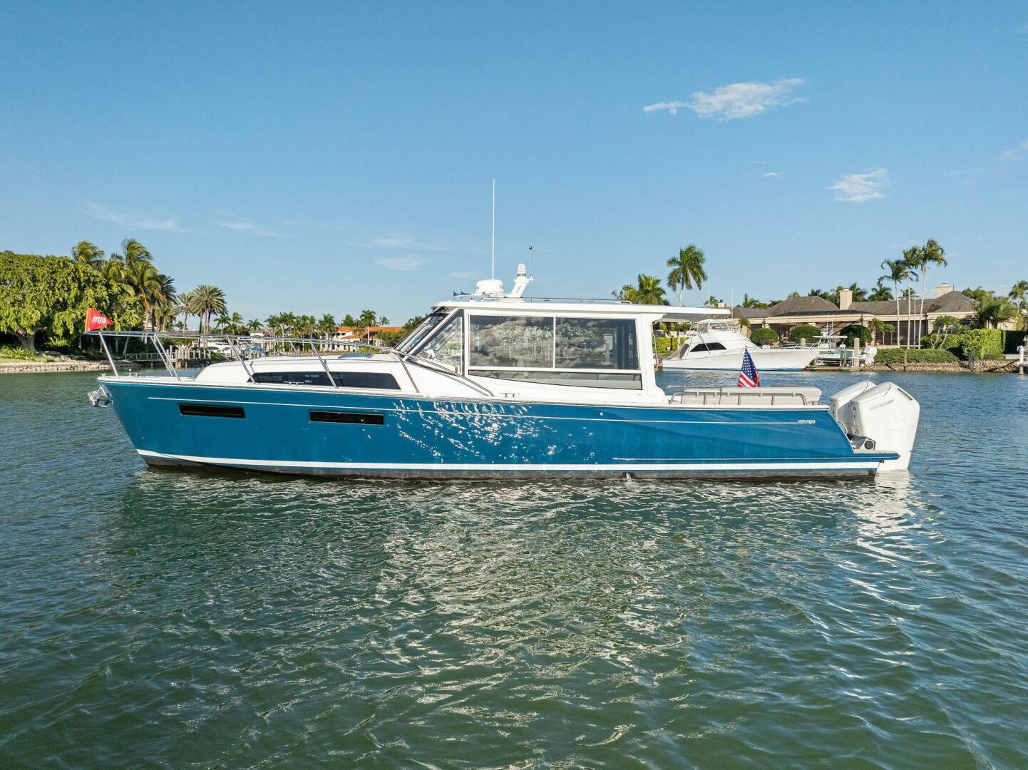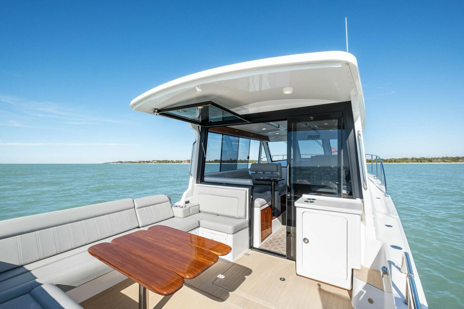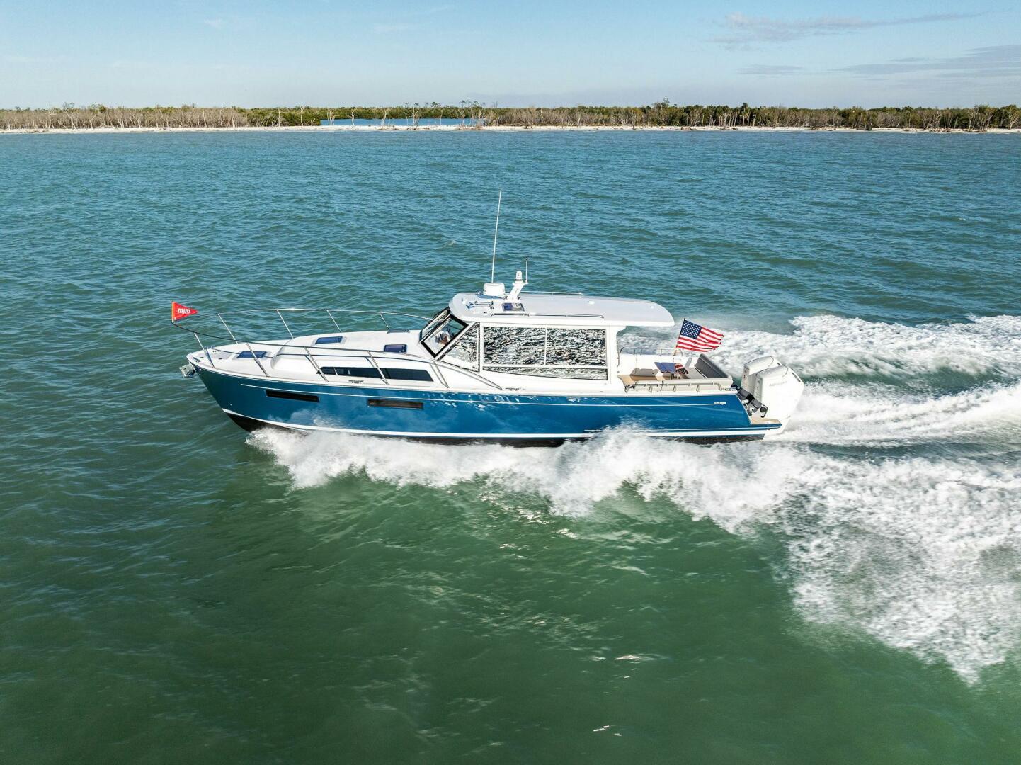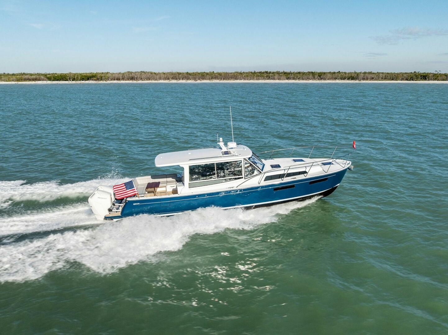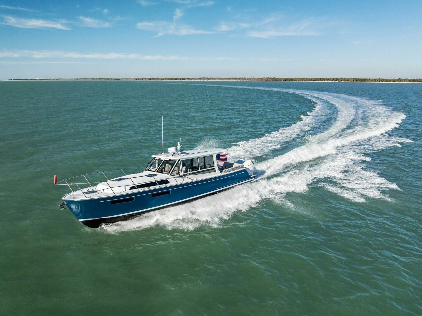 Engineered for best-in-class stability, handling, and ride, this yacht offers confidence-inspiring performance paired with intuitive technology, including dual Garmin navigation, joystick docking, and a glass helm. Every element has been carefully considered, balancing performance, comfort, and craftsmanship to create a yacht that feels equally at home hosting lively evenings, cruising with friends, or serving as a private retreat. This is Downeast luxury redefined—timeless, versatile, and purpose-built for life on the water.