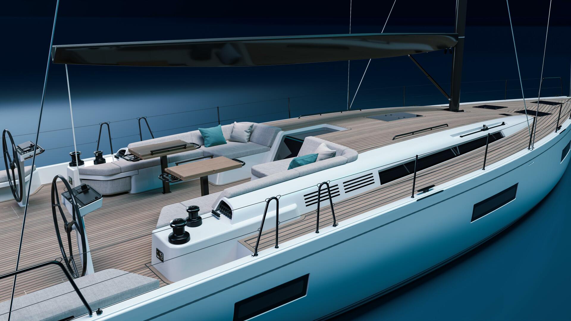 Every aspect of the First 60’s exterior speaks to purposeful engineering and performance-oriented design. Her sleek, sculpted profile, by Lorenzo Argento and Biscontini Yacht Design, balances clean beauty with refined sail systems that enable intuitive, precise interaction with the boat. Advanced features like the captive mainsheet winch, walk-around Winch Island and Park Avenue boom simplify sail handling while centralizing control — making both short-handed sailing and spirited crewed passages equally rewarding.