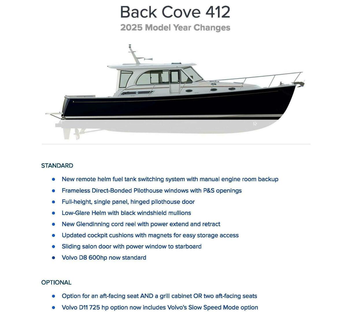 Exceptional craftsmanship, quiet efficiency, and an intuitive layout make the Back Cove 412 a standout for owners who value elegance, reliability, and ease of handling.
