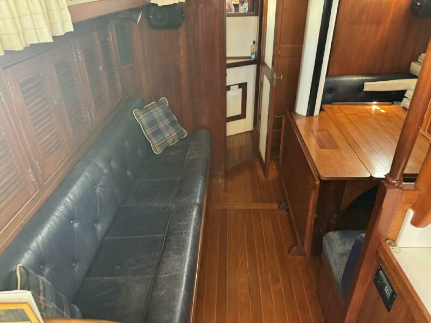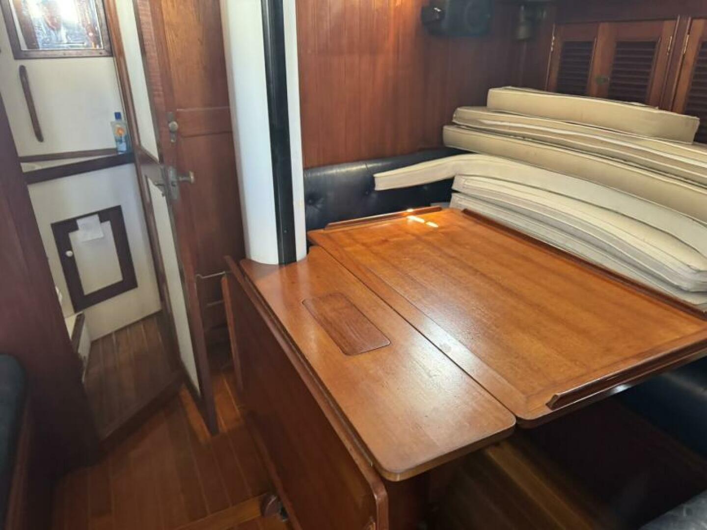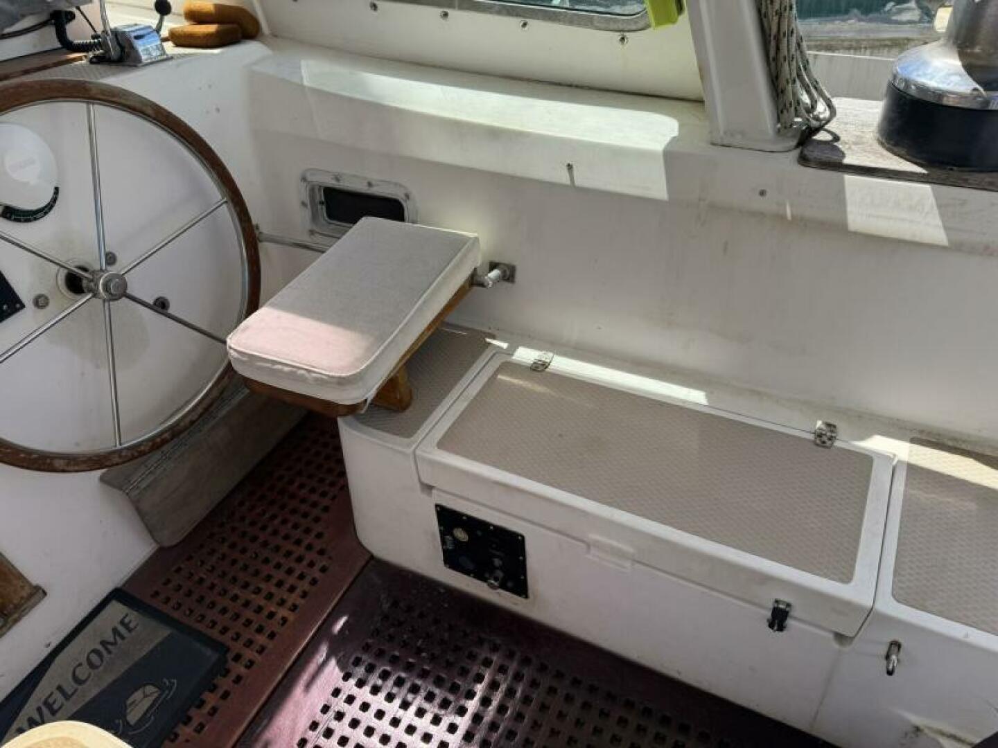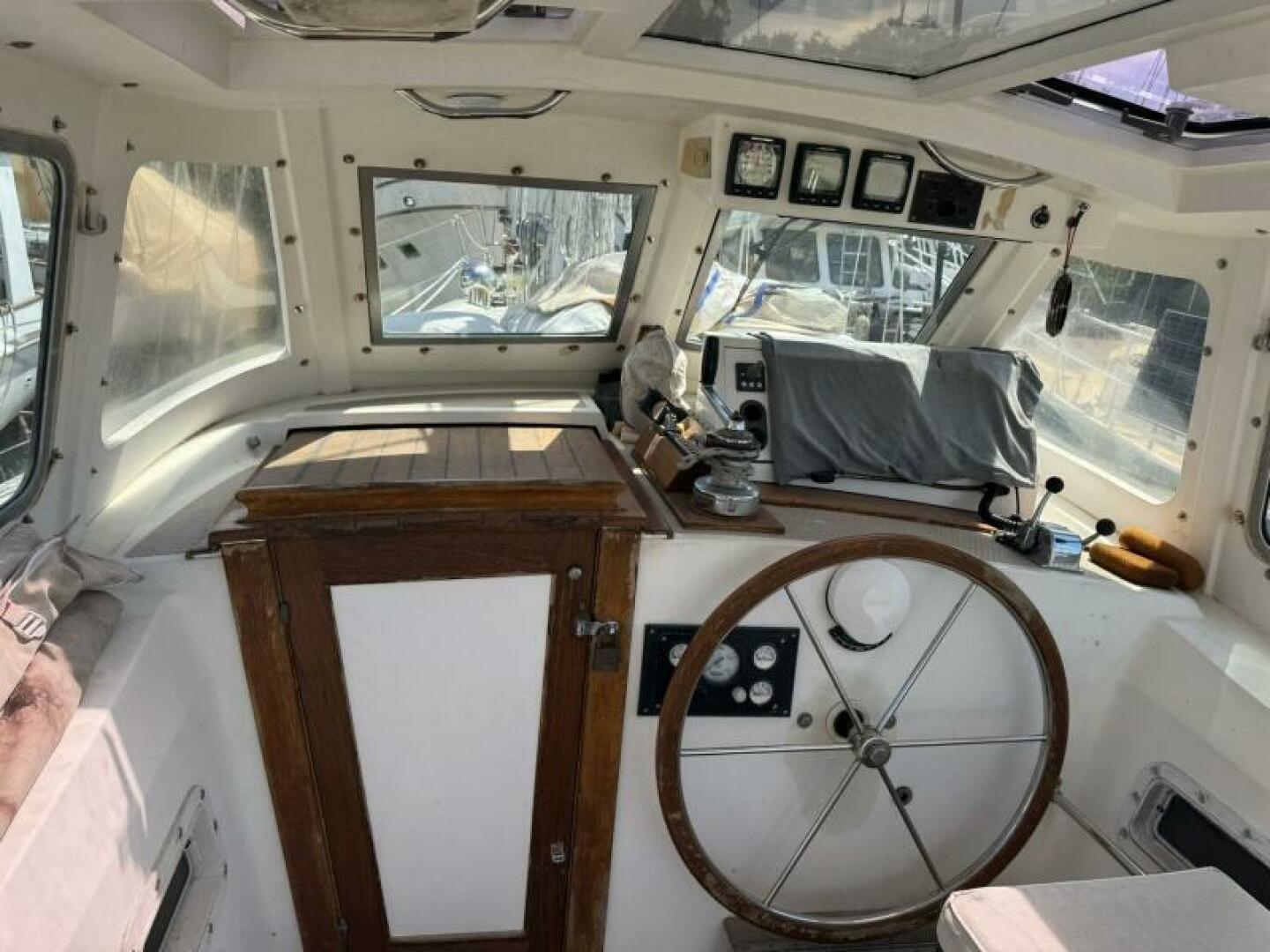 Set up for true bluewater cruising with hydraulic assists, three steering systems, and a Navtec