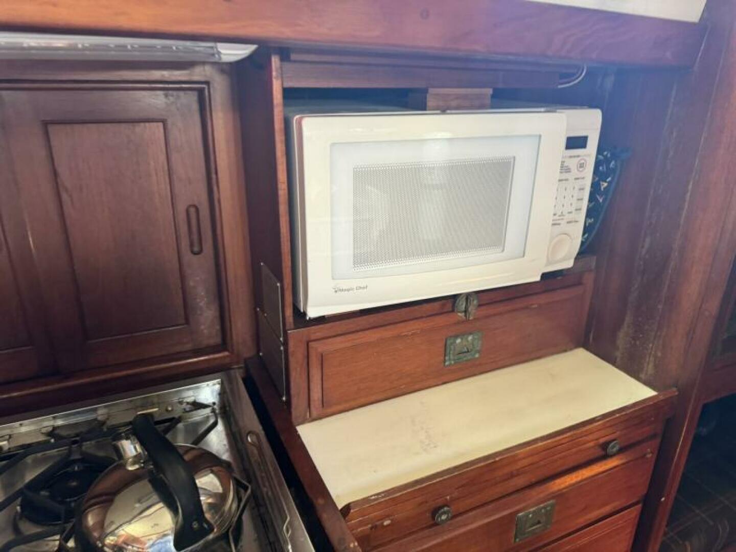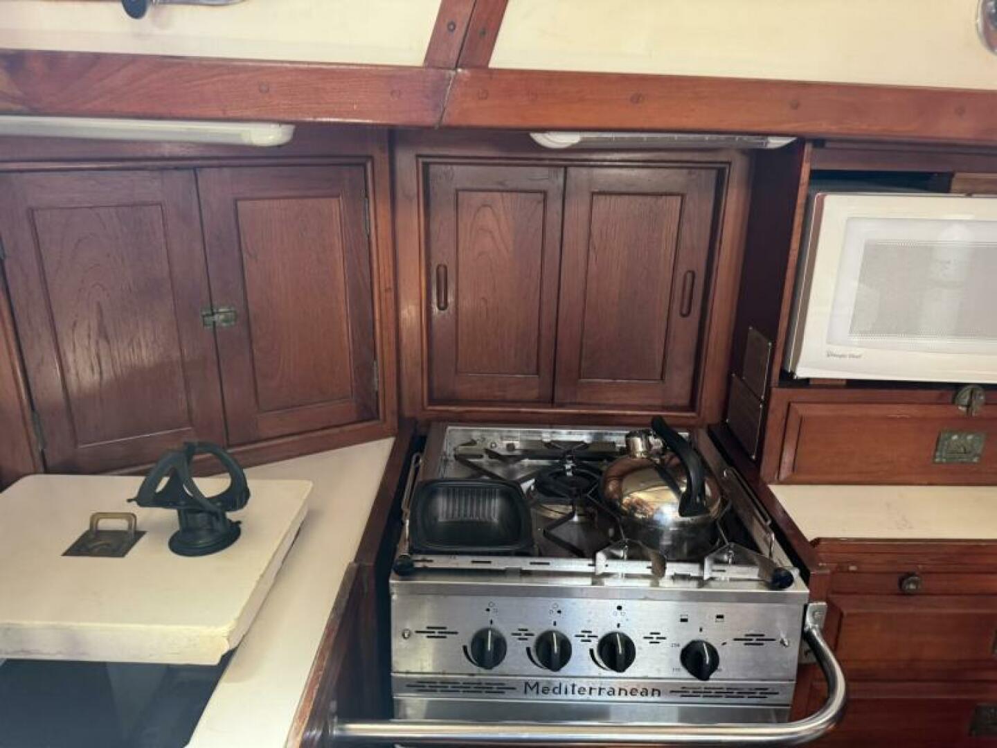 • Interior: Dickinson Mediterranean stove, icebox + deep freezer, 3 heads