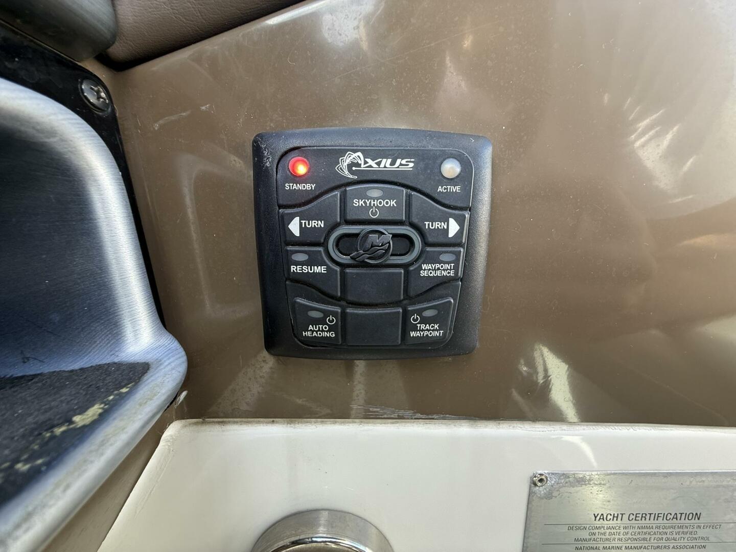 Equipped with Raymarine electronics and a premium JL Audio sound system. Spacious cockpit and bow seating make it great for cruising and entertaining.