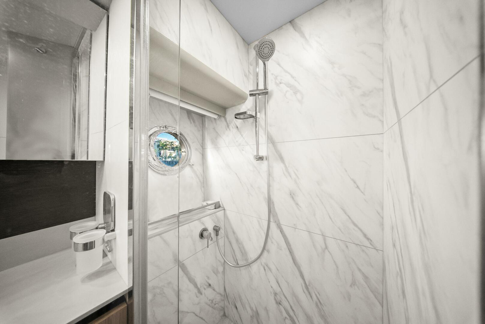 - Manual Blinds for portholes and windows in the bow master cabin, starboard aft cabin, and VIP Cabin