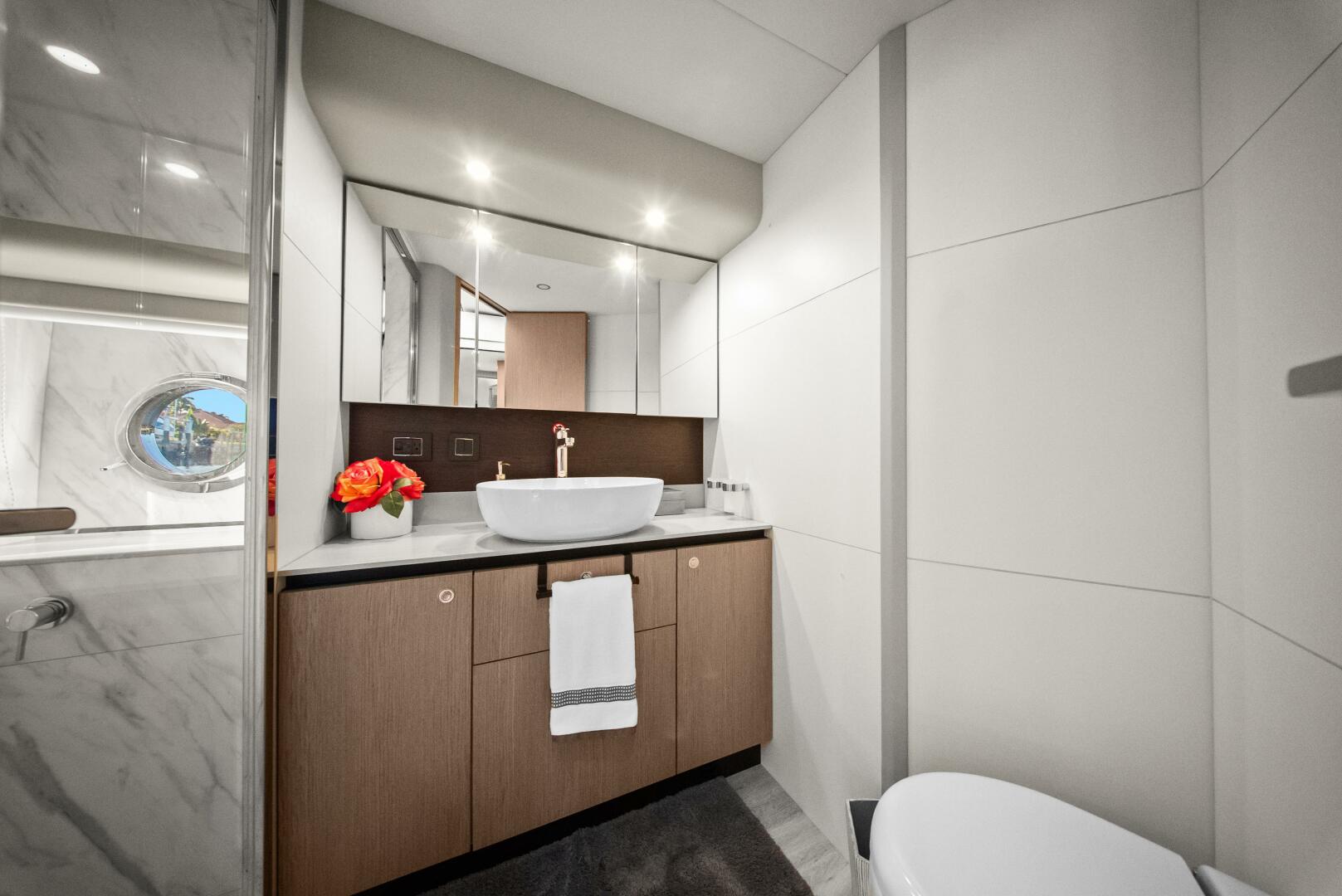 - Vanity desk with seat, mirrors and dedicated lights in left aft cabin