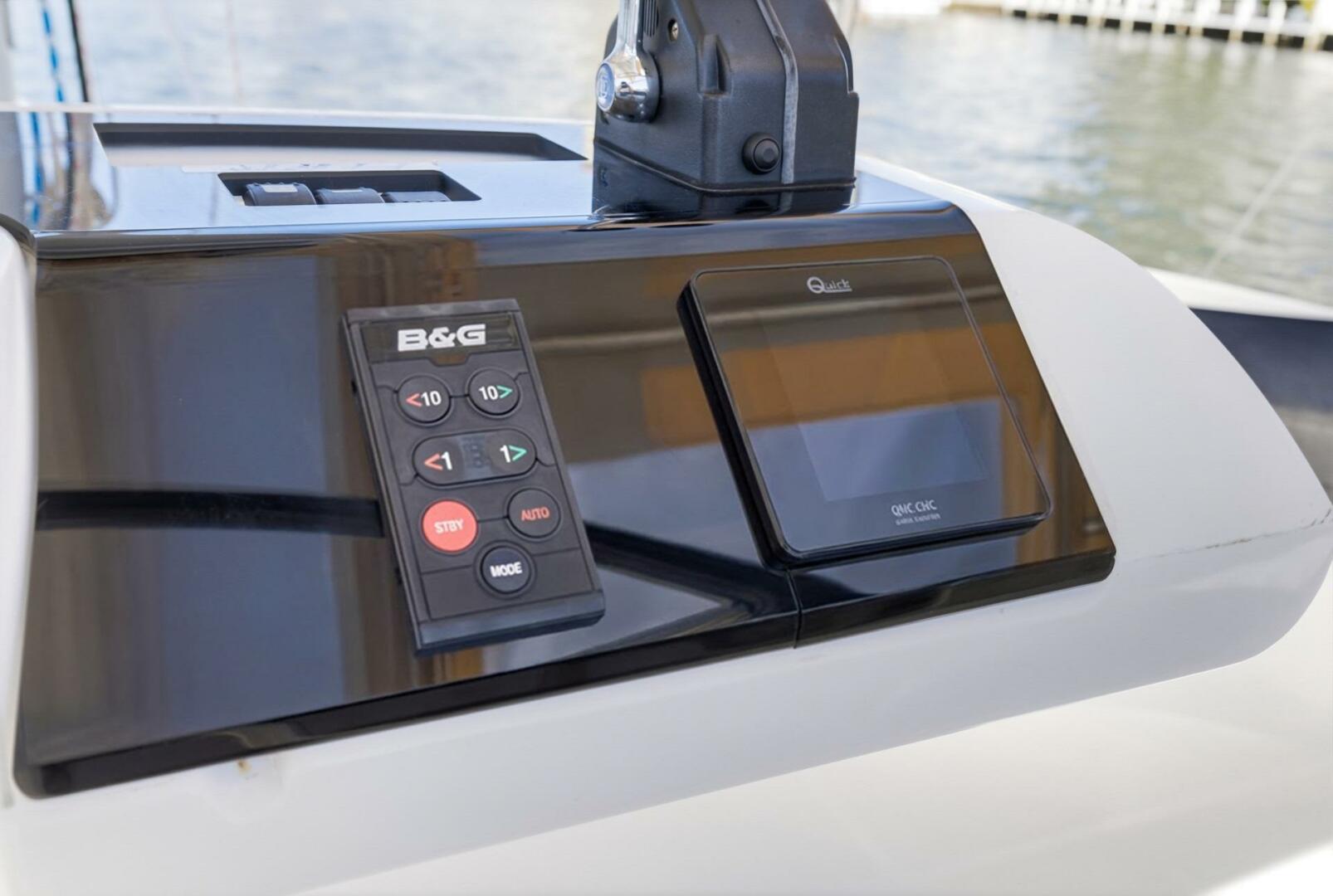 - Flybridge helm with full B&G electronics suite, dual Zeus 3 chartplotters, AIS, autopilot, and dual VHF