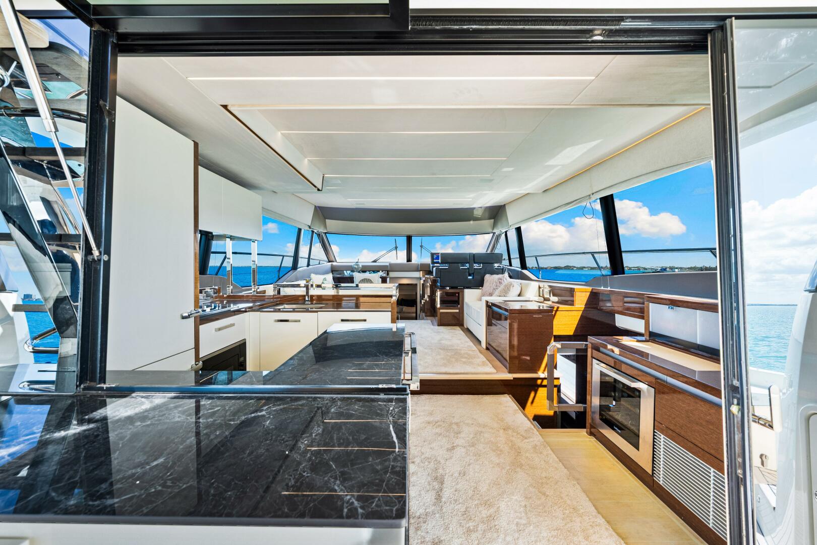 - Flybridge Galley with Refrigerator, Grill, Sink & Storage