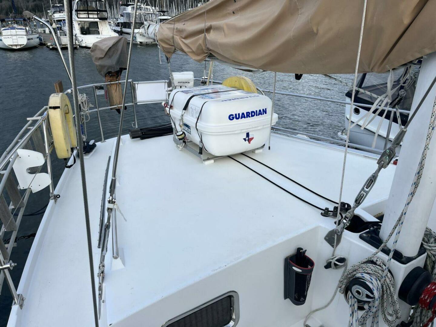 Offshore safety gear: liferaft (2022), ditch bag, medical kit, drogue, rigging cutters
