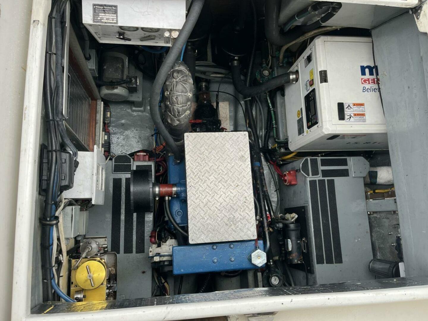 Adjacent to the aft cabin, the second head includes a marine toilet, sink, hot/cold pressure water, shower, and multiple lockers.
