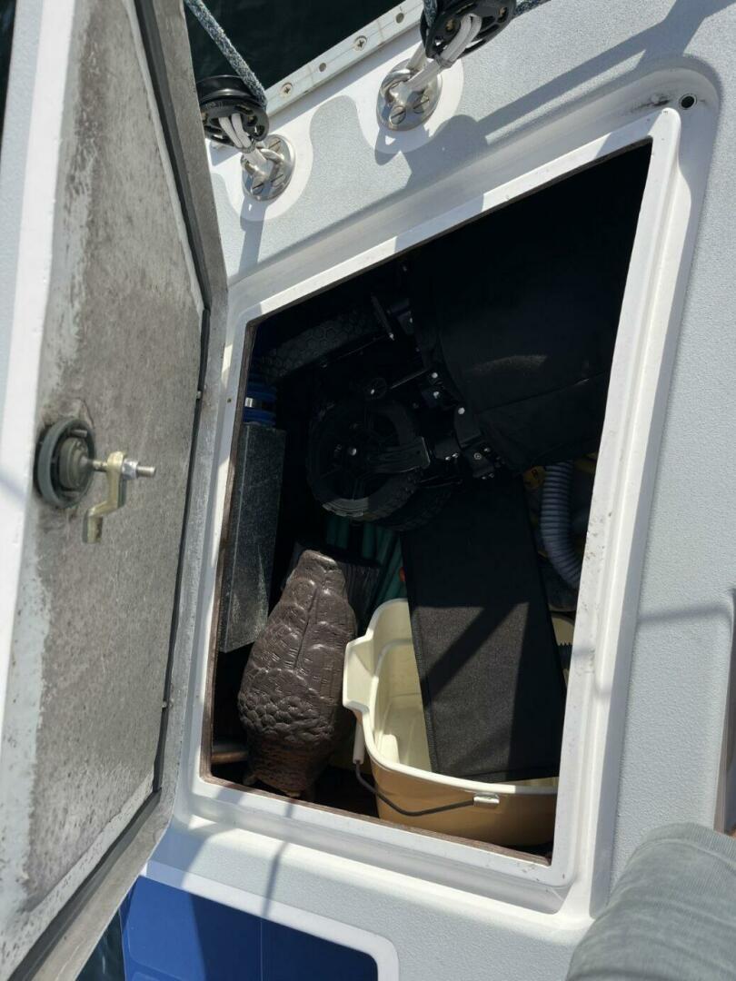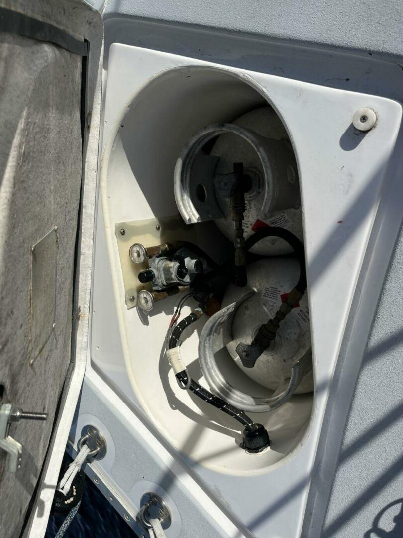 - Holding tank capacity: two 20 gallon tanks, one below V berth and one in aft starboard lazarette)