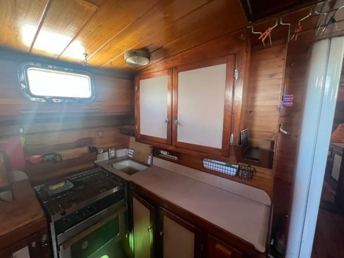 Inside, the layout is practical and comfortable with three cabins and six berths, generous storage, and the kind of volume and utility that works well for liveaboard life, extended cruising, or comfortable time at anchor. This is a straightforward, serviceable cruising boat intended for sailors who appreciate traditional sail handling and simple, proven systems.
