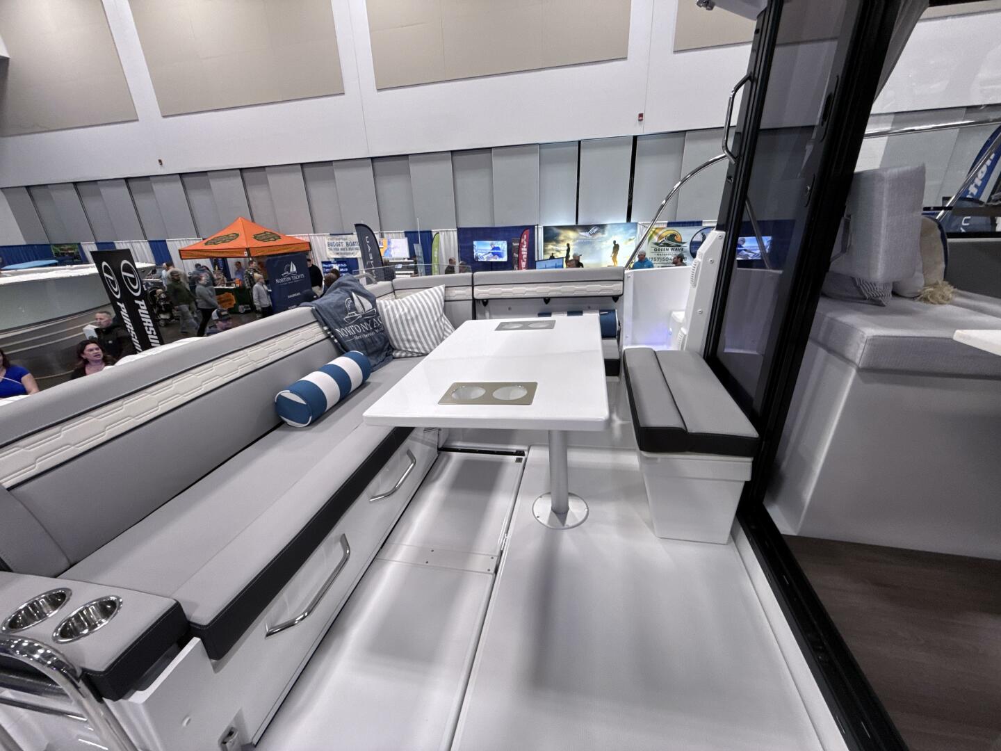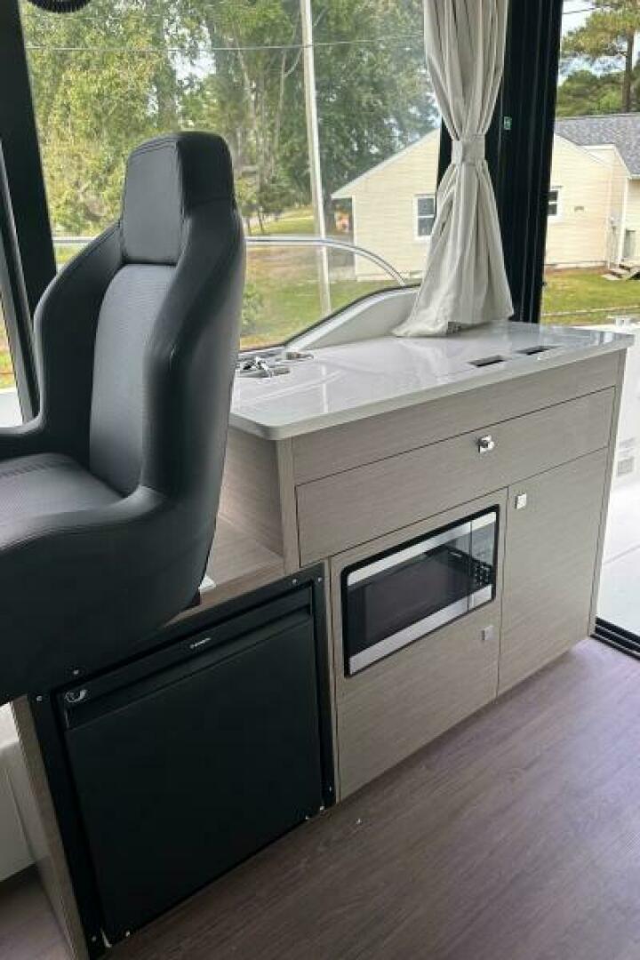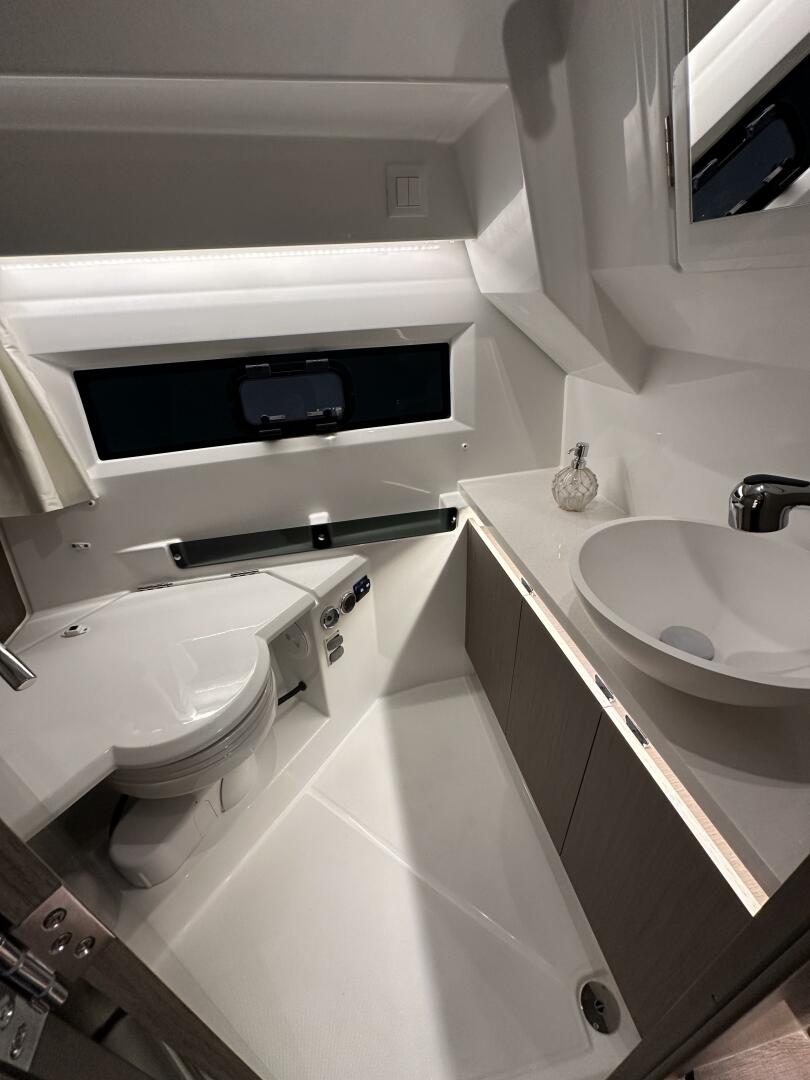 Year-Round Cruising: Escape the ordinary with a 360-degree view of the sea from the cozy interior living space. Copious storage and a contemporary galley create a harmonious onboard life. The sliding glass door seamlessly connects the living space to the sea, inviting family cruises in any season on the Chesapeake Bay.