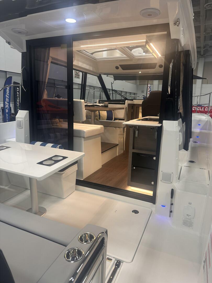 - Improved Helm Station with side door for single-handed docking—ideal for marina maneuvering