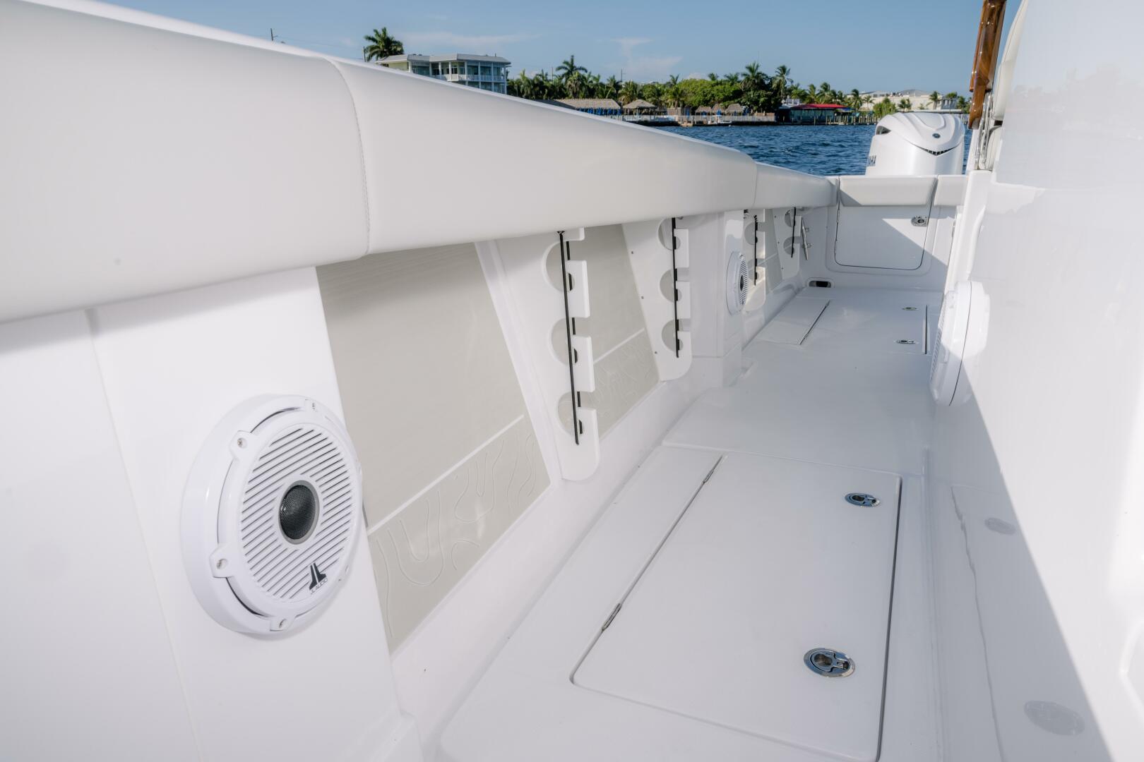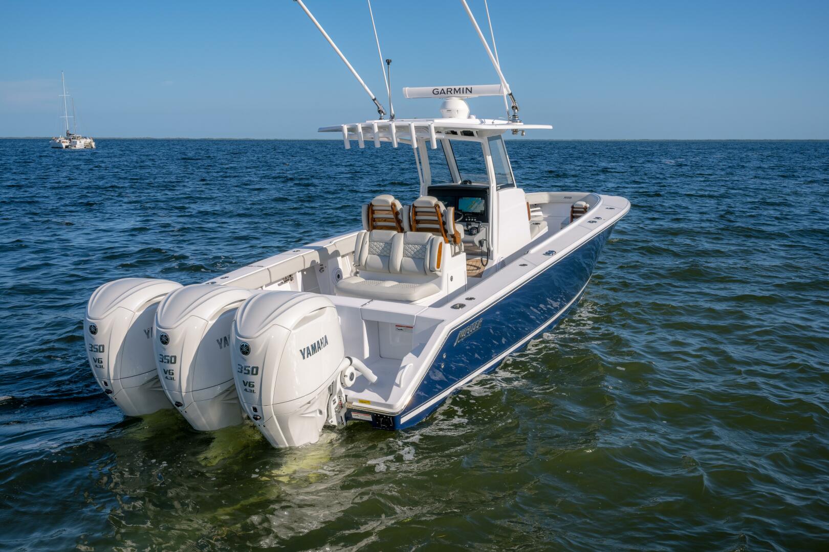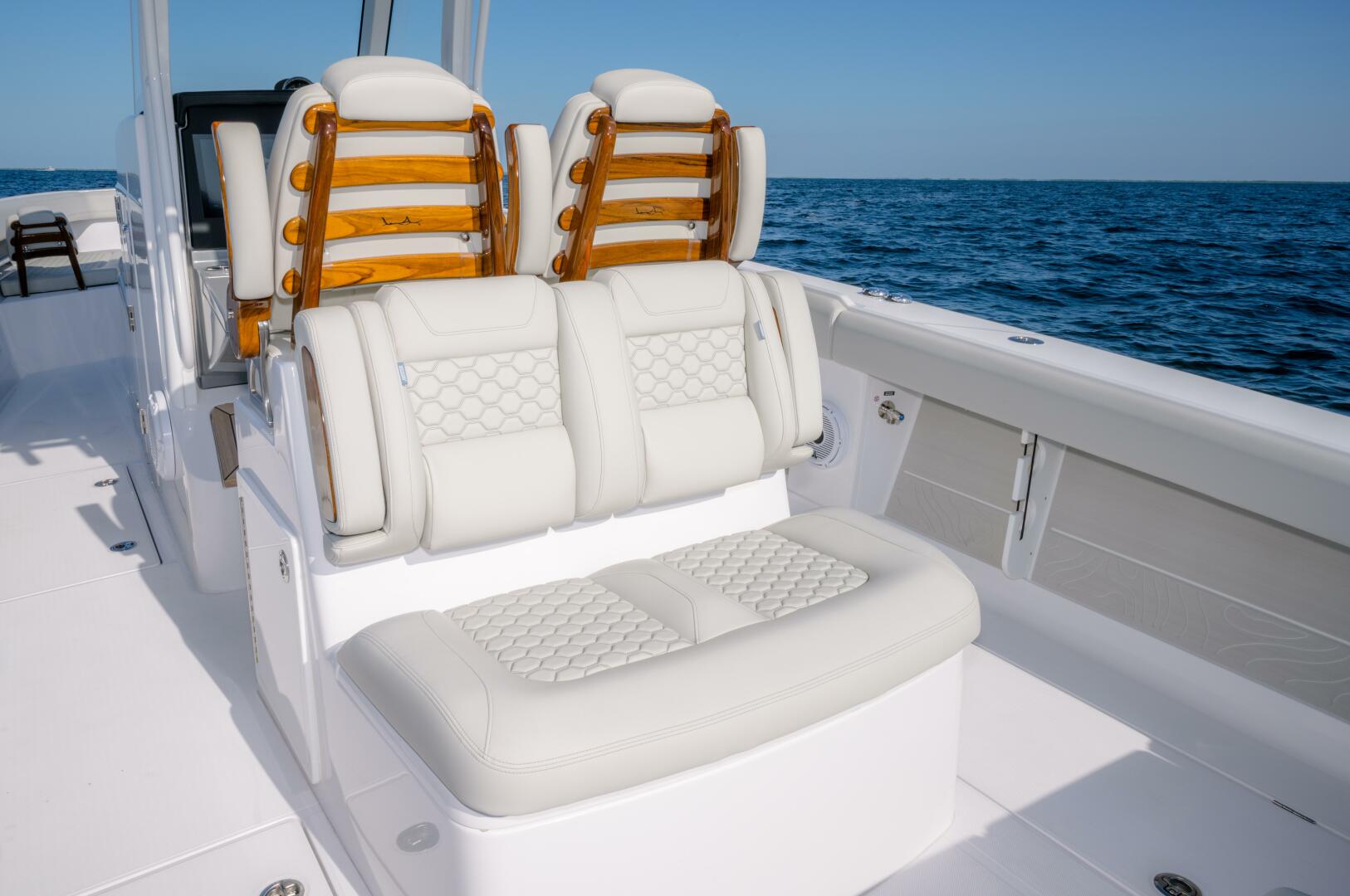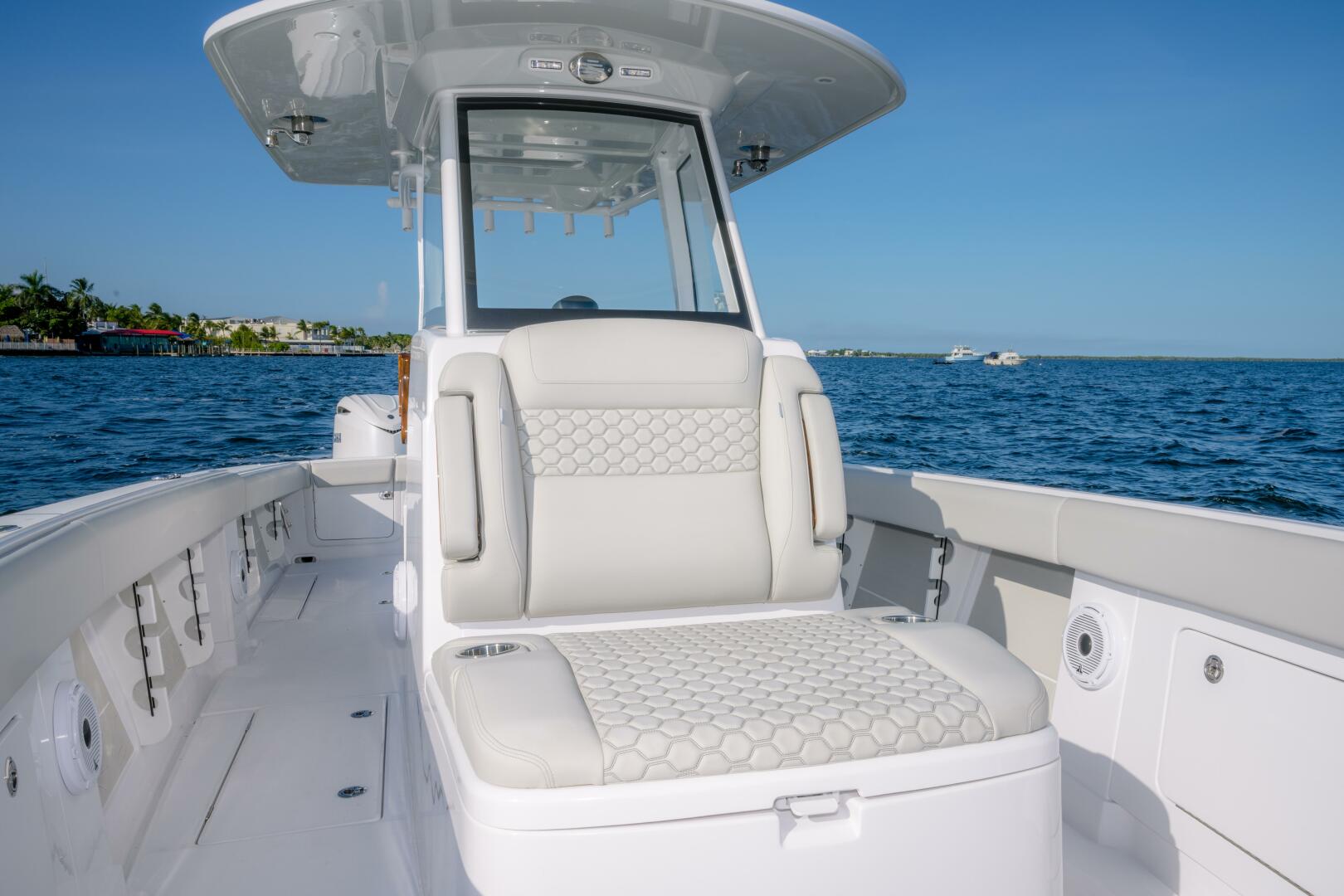 Our team has committed countless hours to researching and incorporating the latest and greatest advancements in marine technology and usability for this exquisite model. Merging the realms of luxury and sport, this singular vessel epitomizes a seamless blend of aesthetics and functionality. The 340LS inherits the proven hull of our esteemed 34 model while embracing the sleek modern console of a true sportfisher. The helm exemplifies a commitment to efficiency, featuring easily accessible battery access, a 3-piece enclosed glass windshield, and exquisite teak accents. This yacht-inspired design ensures not only an attention-grabbing presence on the water but also comfort for all passengers. Prepare to step up your Jupiter experience with the perfect fusion of all the best features in one seminal model.