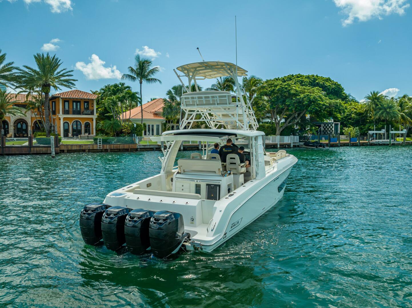 Introducing the Exquisite 2016 Boston Whaler 420 Outrage with Quad Mercury 350 Verado and a Unique Marlin Tower!