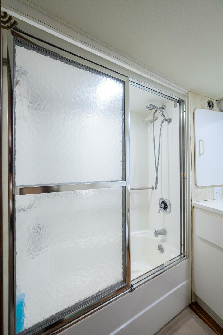 - The primary stateroom is located aft of the twin engine rooms, allowing for privacy and features a king size bed with an abundance of storage and closet space.