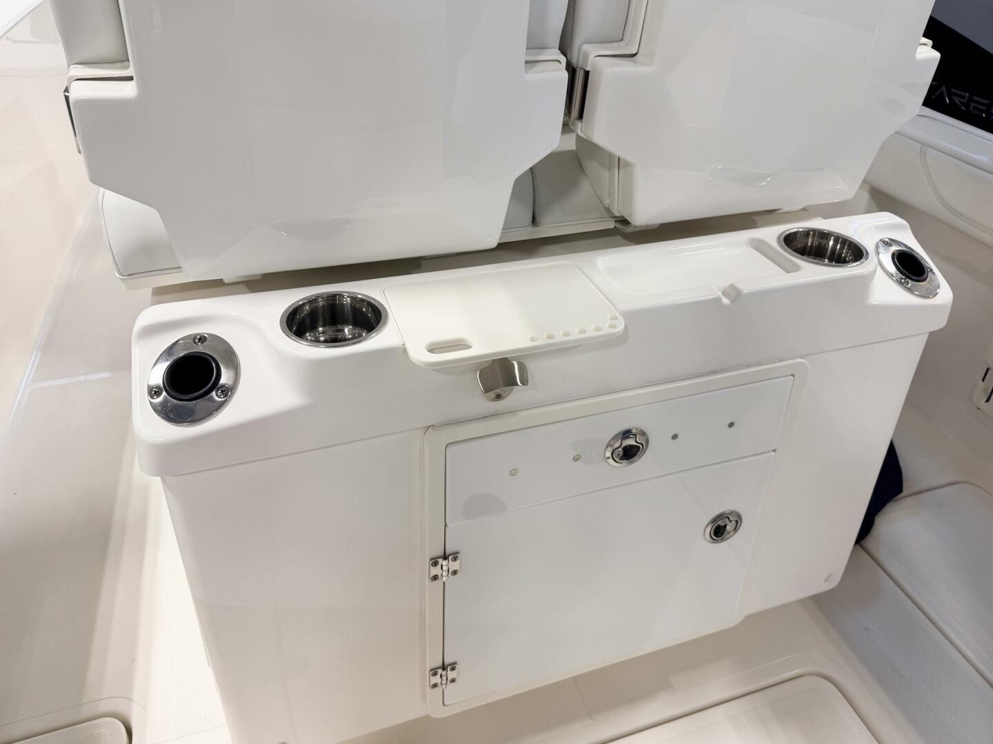 - Fish Boxes (28 gallons each), In-Floor, Insulated and Diaphragm Pump with Overboard Discharge (Port and Starboard)