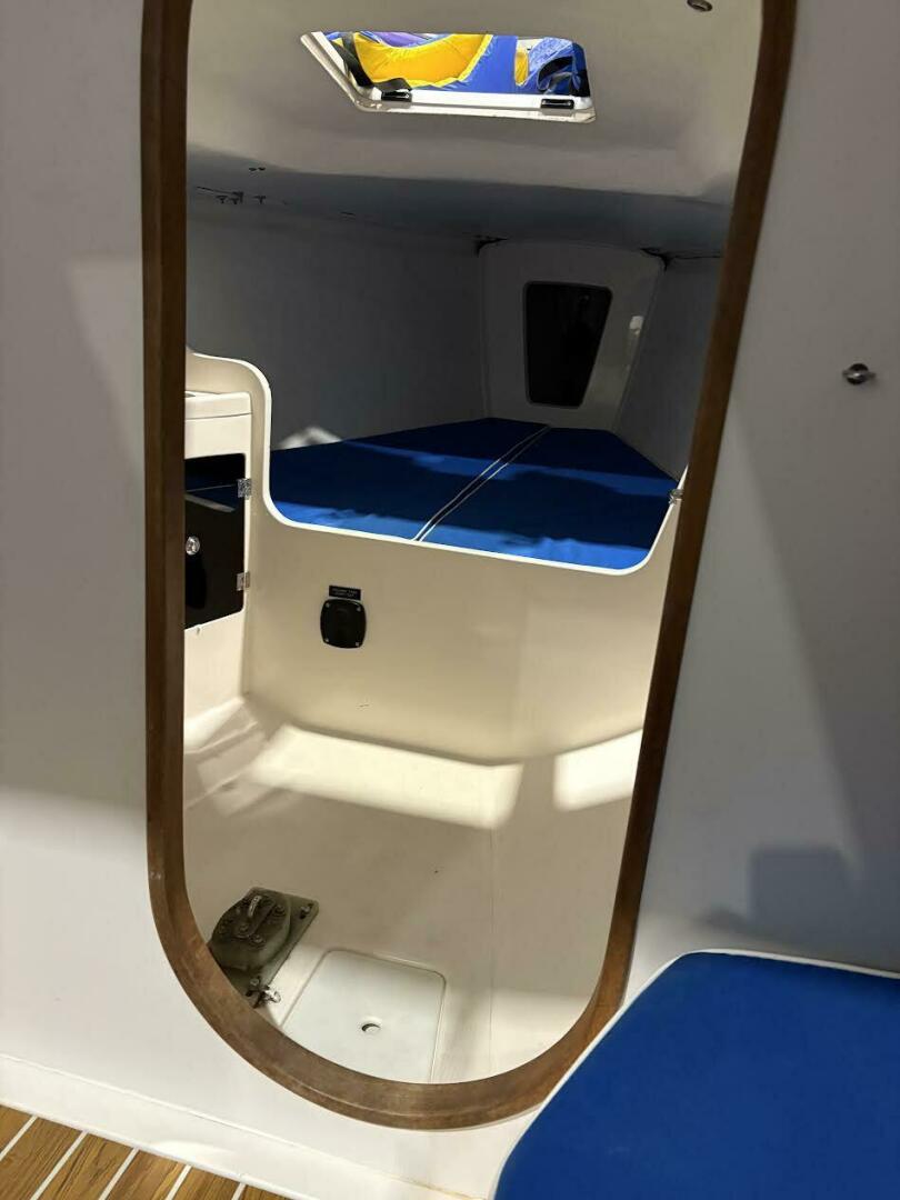 • GRP molded main structural bulkhead, bonded to hull and deck as support for shroud chainplates with single opening to head and forepeak.