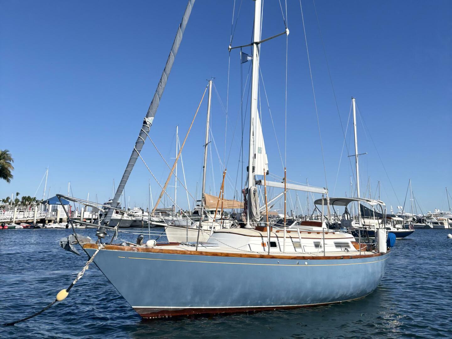 This gorgeous, beautifully maintained classic sloop is an eye-catcher and a joy to sail. Enjoy her in-mast furling, a suite of upgraded electronics, electric head, Universal engine with low hours. Rated in "above average" condition in a recent survey, the surveyor reports this sturdy vessel built fo
