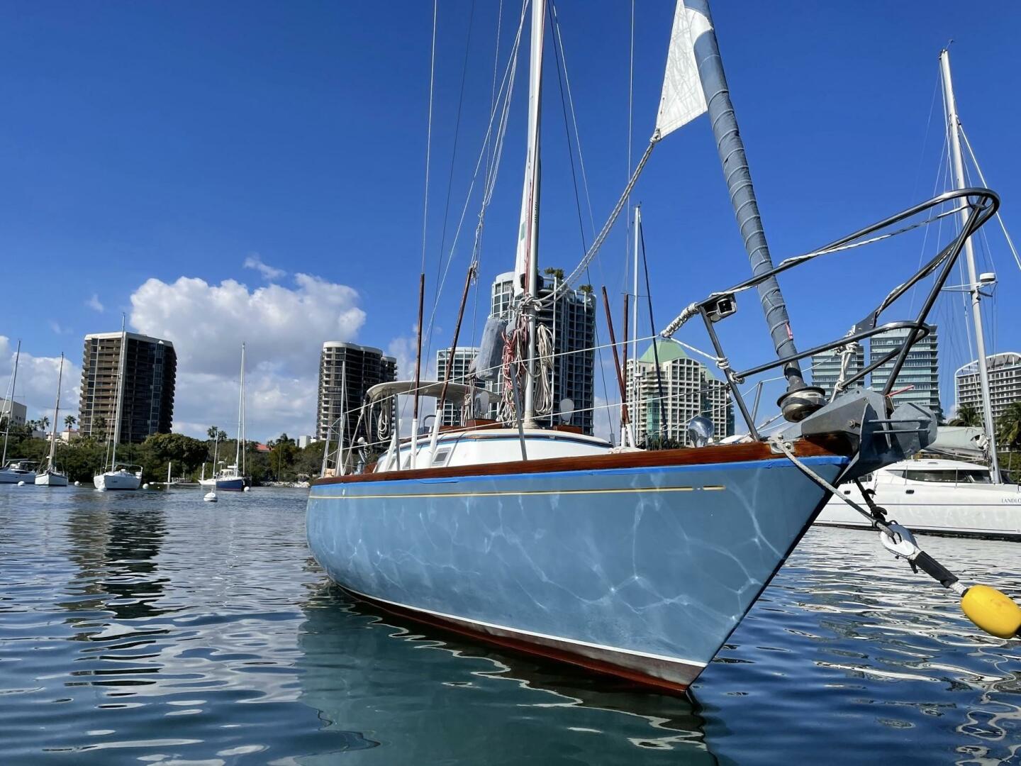 Solidly built for offshore cruising, the Carter 33 is a classic cruiser-racer sloop. This vessel has been lovingly maintained, and pride of ownership is evident throughout. Warm teak decks and cockpit welcome the skipper and crew.