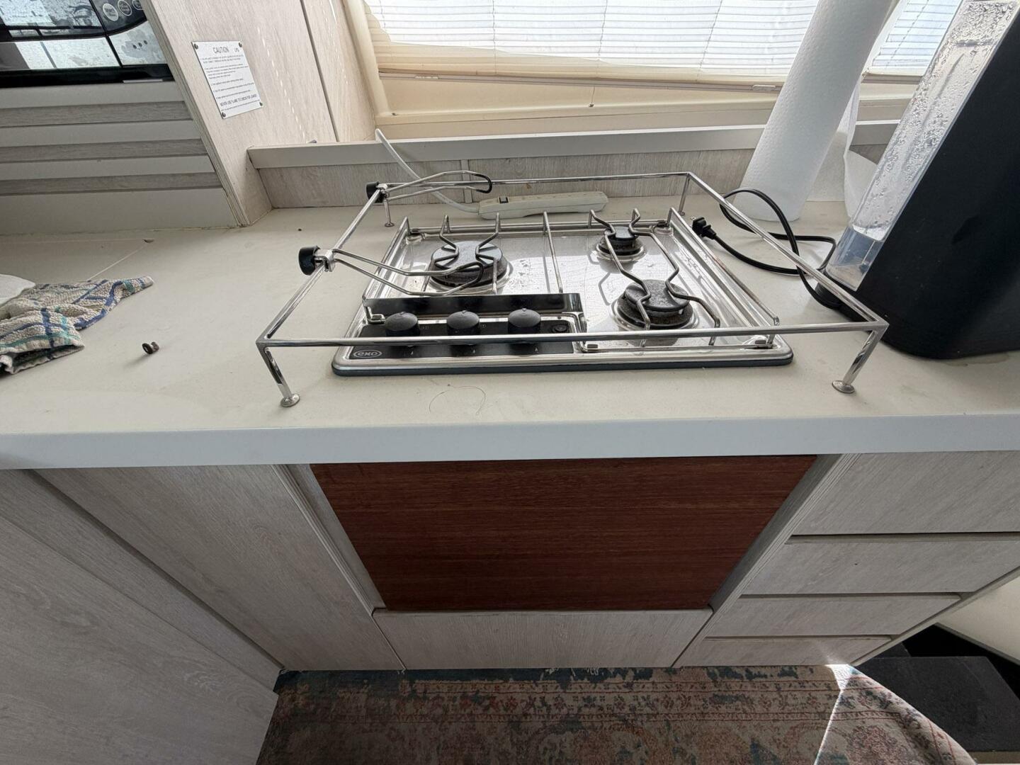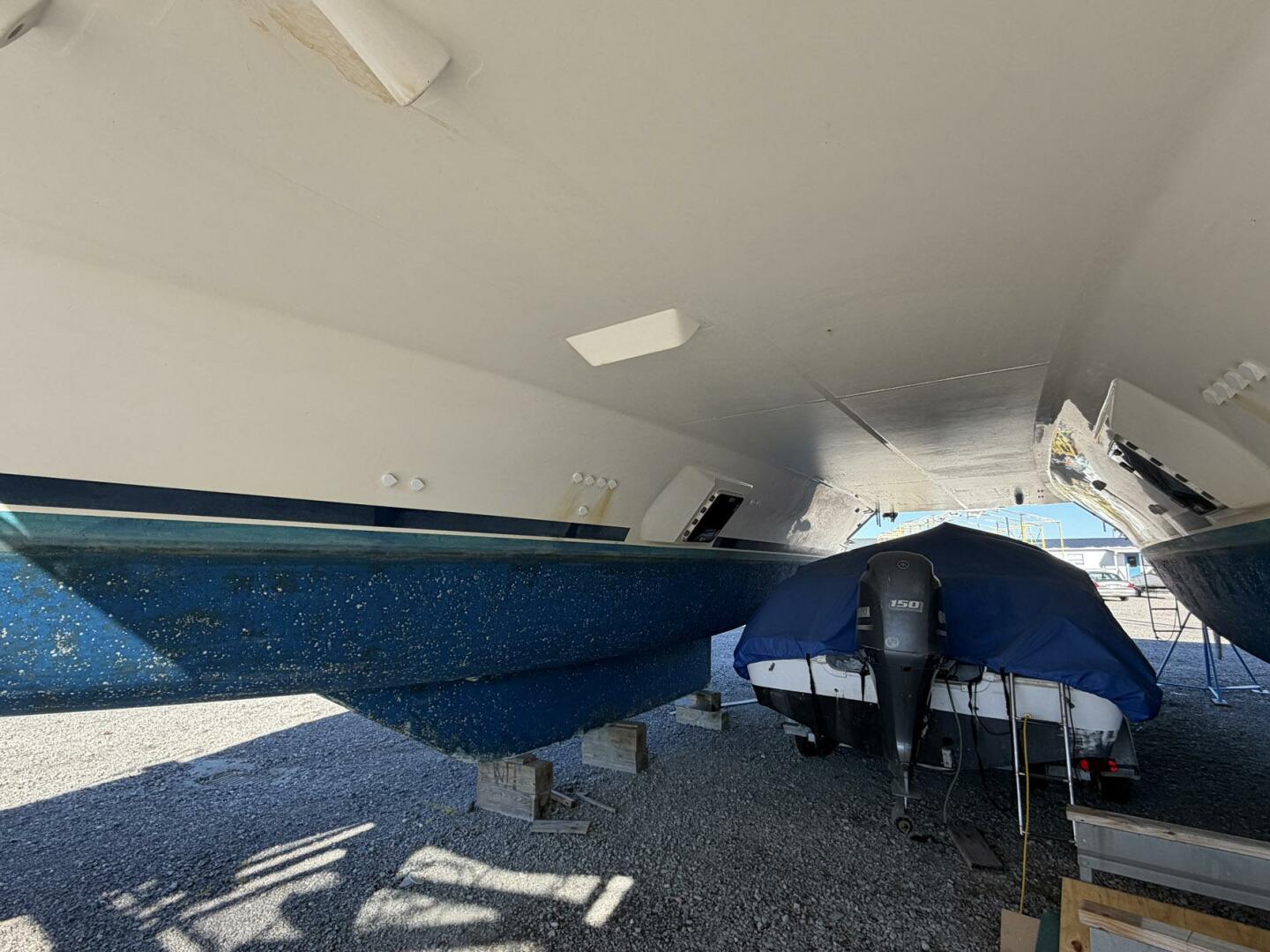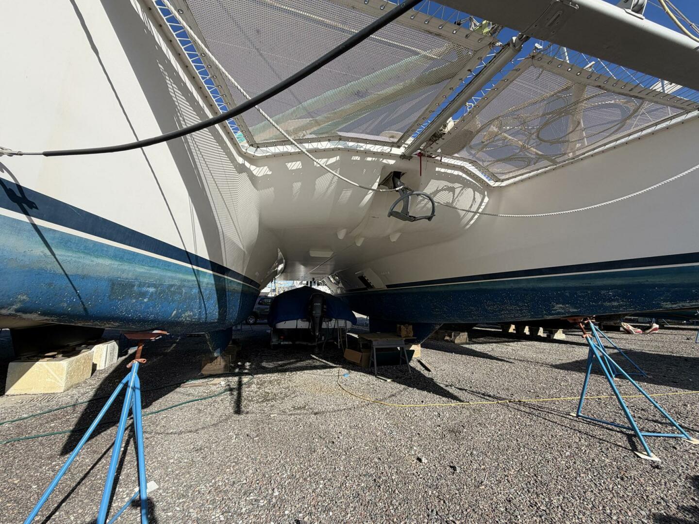 Gratitude is a 2015 Leopard 48 owner’s version. The boat broke free of her mooring in a storm, and was de-masted and suffered some limited structural and other superficial fiberglass damage. She is located in North Charleston, SC at Cooper River Boatyard, and is available for easy inspection during hours of the boatyard.