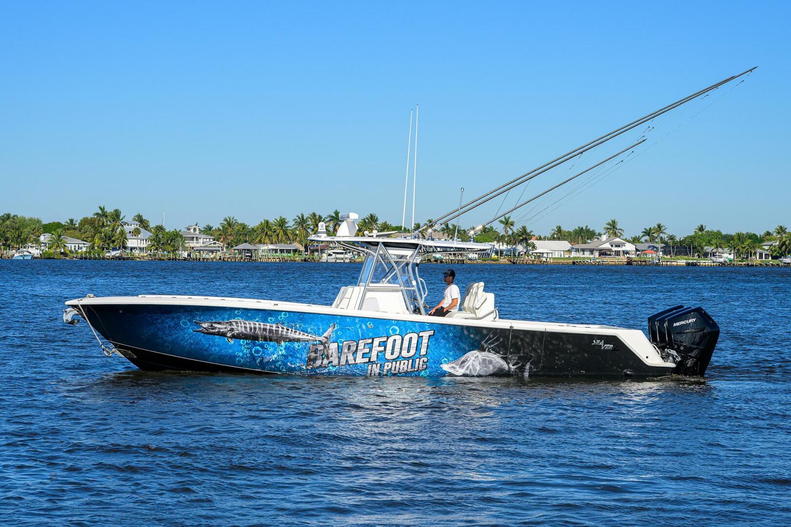 The 2023 SeaVee 370Z is a high-performance center console boat designed for serious offshore fishing and cruising. It features a twin-stepped, cross-ventilated hull with patented SpeedRail® technology for superior efficiency, speed, and a dry ride in rough conditions. With triple Mercury 400 V10 outboard engines, it offers an excellent power-to-weight ratio,