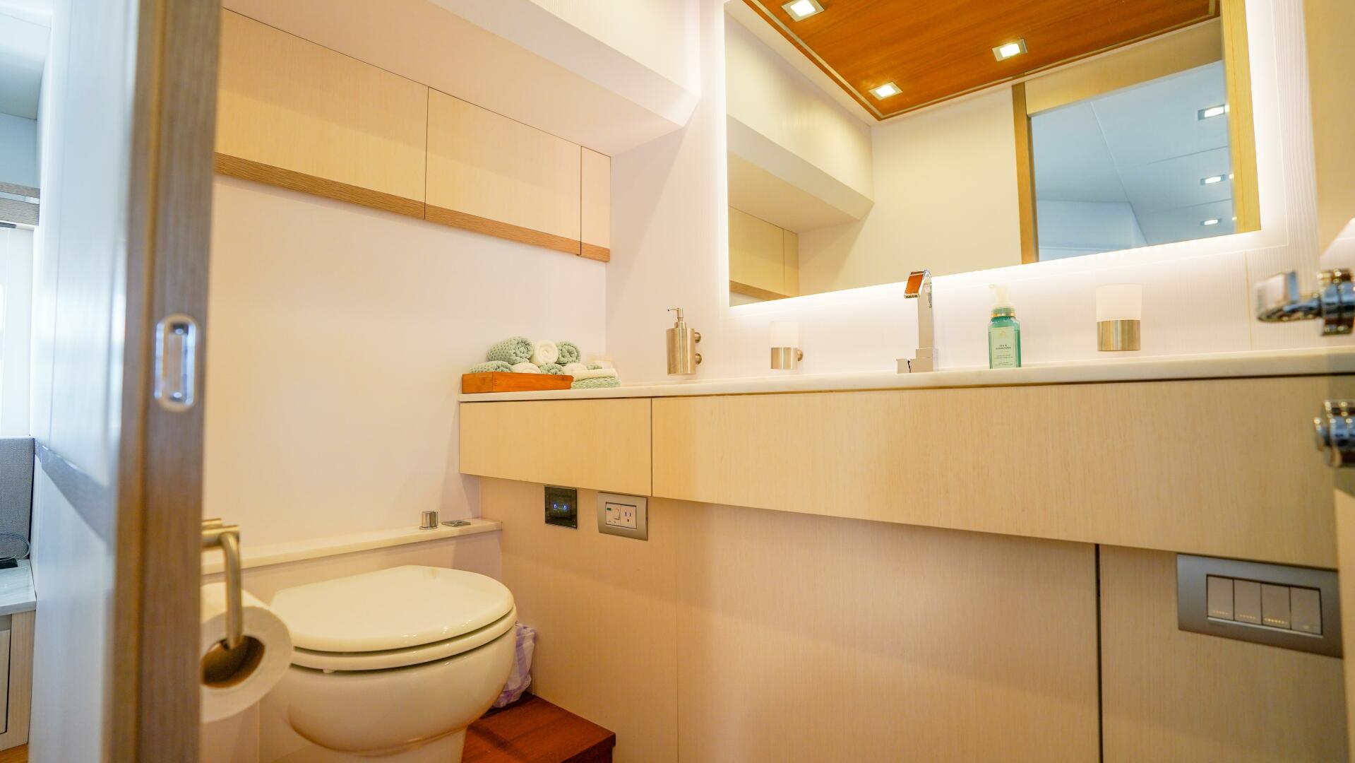 Moving to the bow, a large sunbathing area offers an additional outdoor retreat with panoramic views and a strong connection to the sea. Below deck, the yacht continues to impress with generous volume and a thoughtfully optimized layout. The galley is positioned amidships, serving as a natural link between interior and exterior living spaces and benefiting from an atrium-style design with overhead glazing that floods the area with natural light. Accommodations are equally inviting, with spacious cabins, expansive hull windows, and refined Italian finishes that create an airy, comfortable atmosphere for owners and guests alike.
