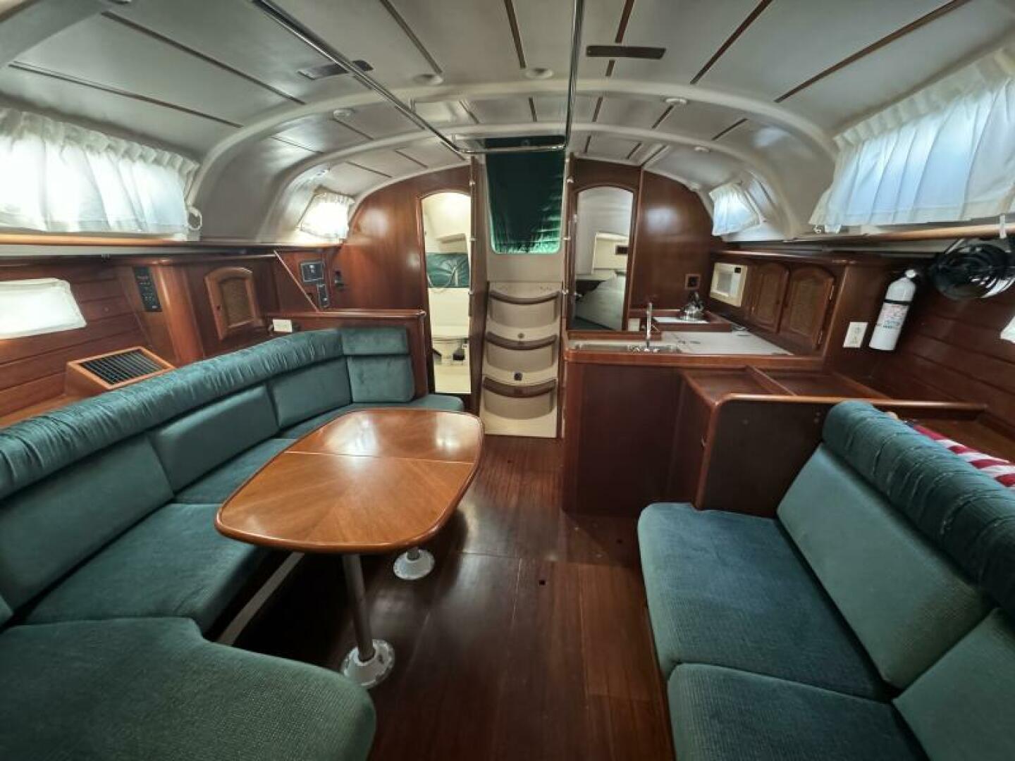 The Beneteau Oceanis 381 was designed by listening to the needs of sailors and experienced yachtsmen around the world. In building this boat, Beneteau wanted a boat which perfectly materializes Beneteau’s philosophy on cruising – utilizing technically advanced research and production techniques in such a way as to result in a performance cruiser with a very spacious and comfortable interior. Moreover, the Oceanis 381 has been specifically designed for warmer climates with an impressive number of deck hatches and opening ports. The salon/galley is spacious and well-equipped and the aft cabin has a large berth.