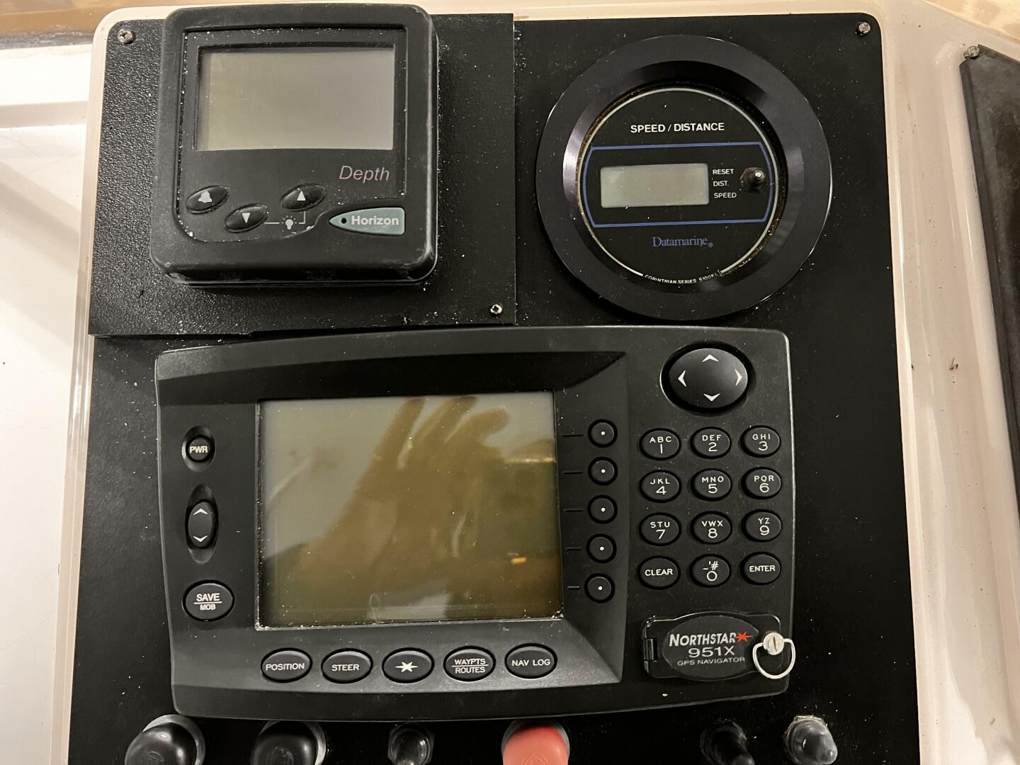 RAY 120 - SIMRAD AP11 AUTO PILOT - NORTHSTAR 951X - HORIZON DEPTH GAUGE - DATA MARINE SPEED & DISTANCE - DANFORTH COMPASS -