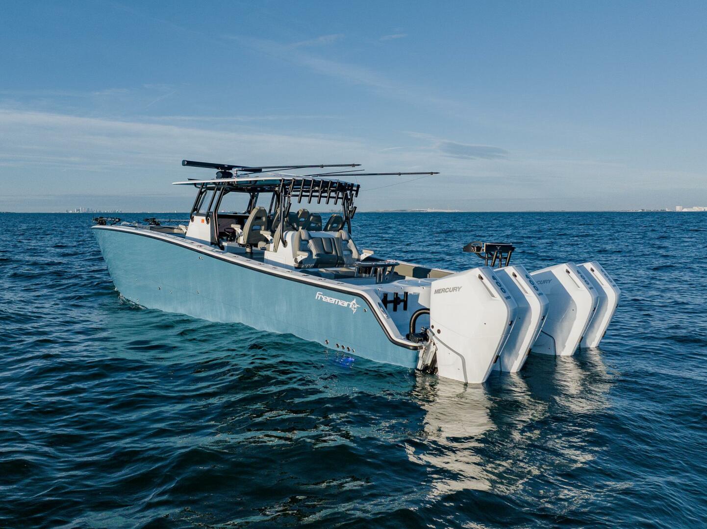 This 2025 Freeman 42 LR is a fully loaded, low-hour example that has been exceptionally maintained and kept under a covered boat lift. Powered by quad Mercury V10 400 HP outboards with just 110 hours, this boat is spec’d perfectly and completely turnkey, ready for its next owner.