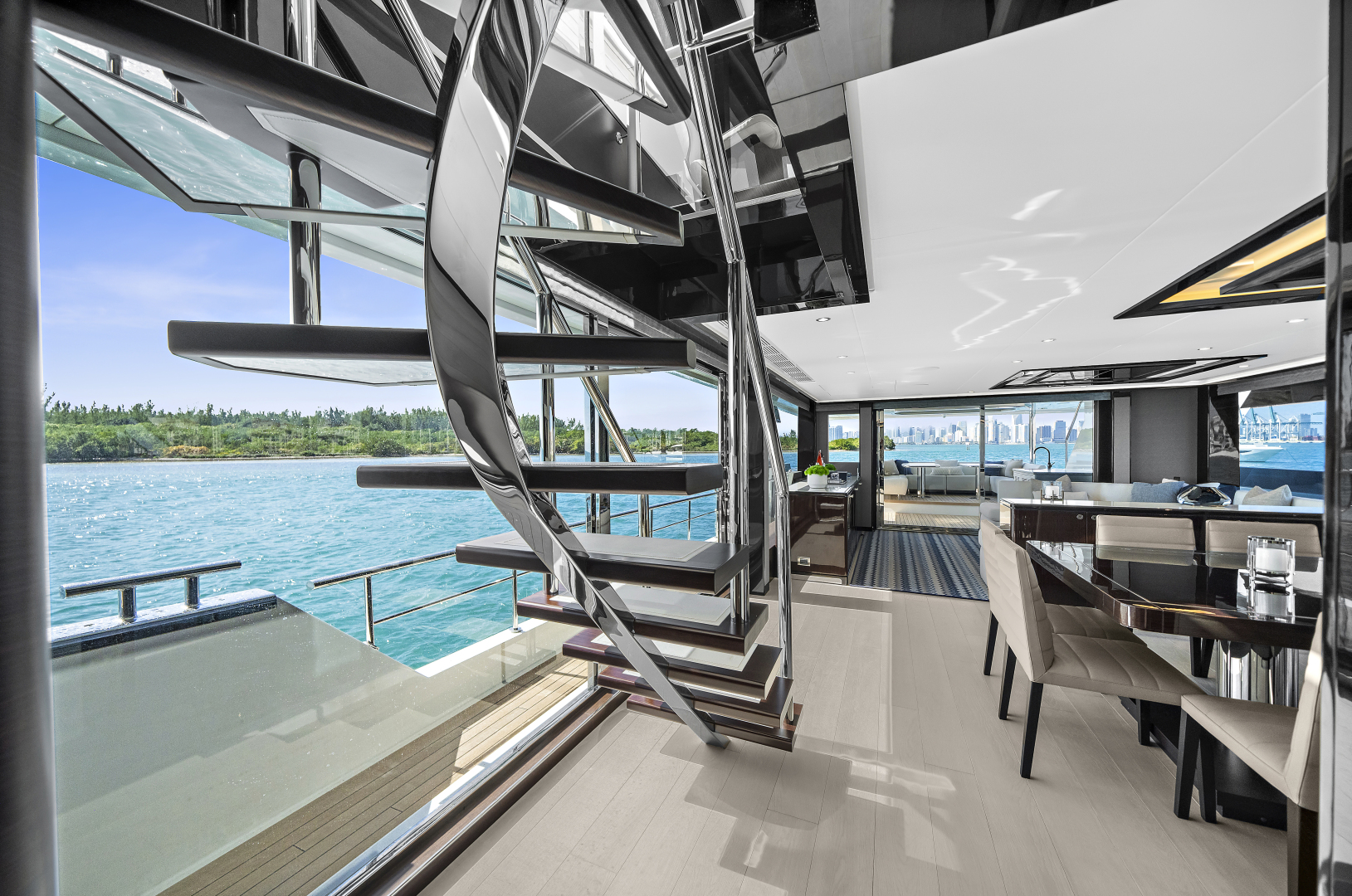 “LA-LA-LA” is a 5 stateroom 2024 Ocean Alexander 32L Skylounge that presents a rare turnkey opportunity, blending strong performance with refined, resort-style luxury. Recent services include engines, generators, watermakers, and a bottom job, making her fully prepared for immediate cruising. She is distinguished by a coveted on-deck Master stateroom featuring 180-degree panoramic windows and complemented by 4 spacious VIP and Guest accommodations. She has a dedicated 3 stateroom crew quarters plus 2 heads which allows for smooth, professional operation.