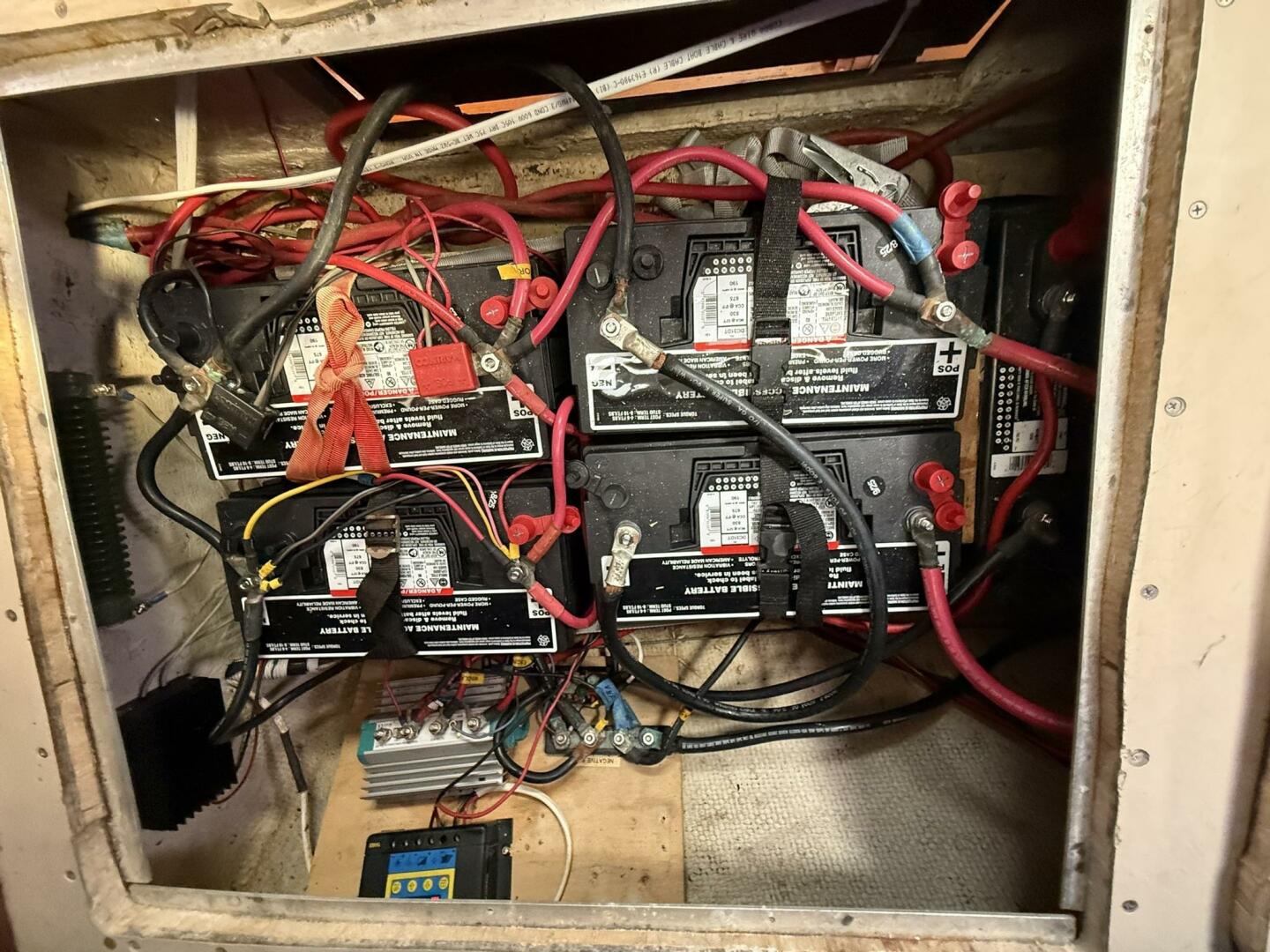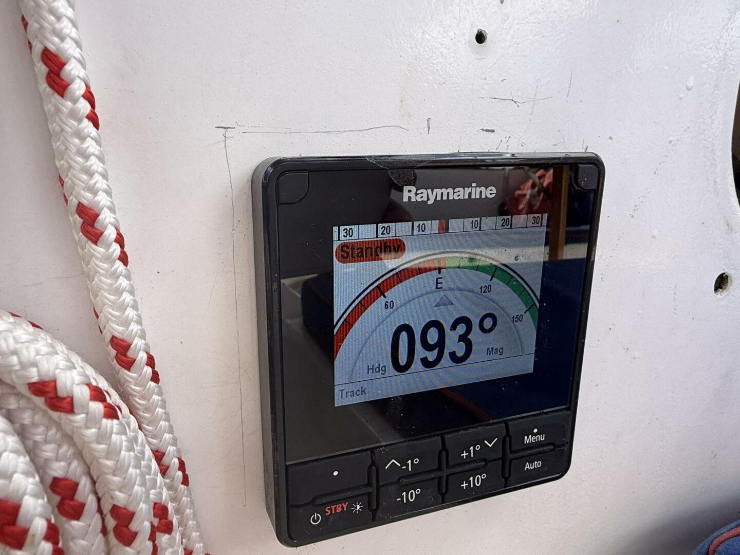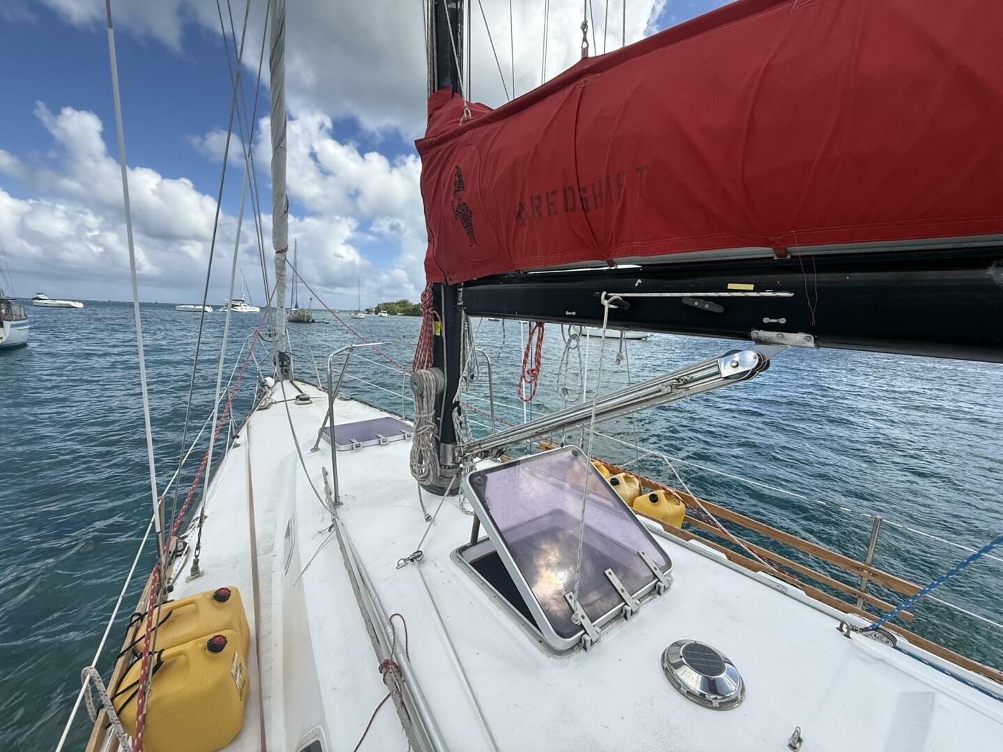 Over the last several years, Redshift has been extensively refit for offshore passagemaking and self-sufficient cruising. With a Sailomat wind vane, new Raymarine EV200 autopilot, solar power, AIS, modern refrigeration, and a 2000W inverter, she is genuinely ready to go places — safely and comfortably.