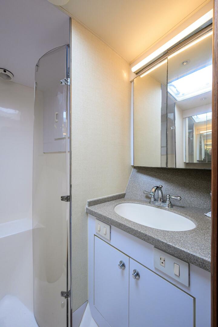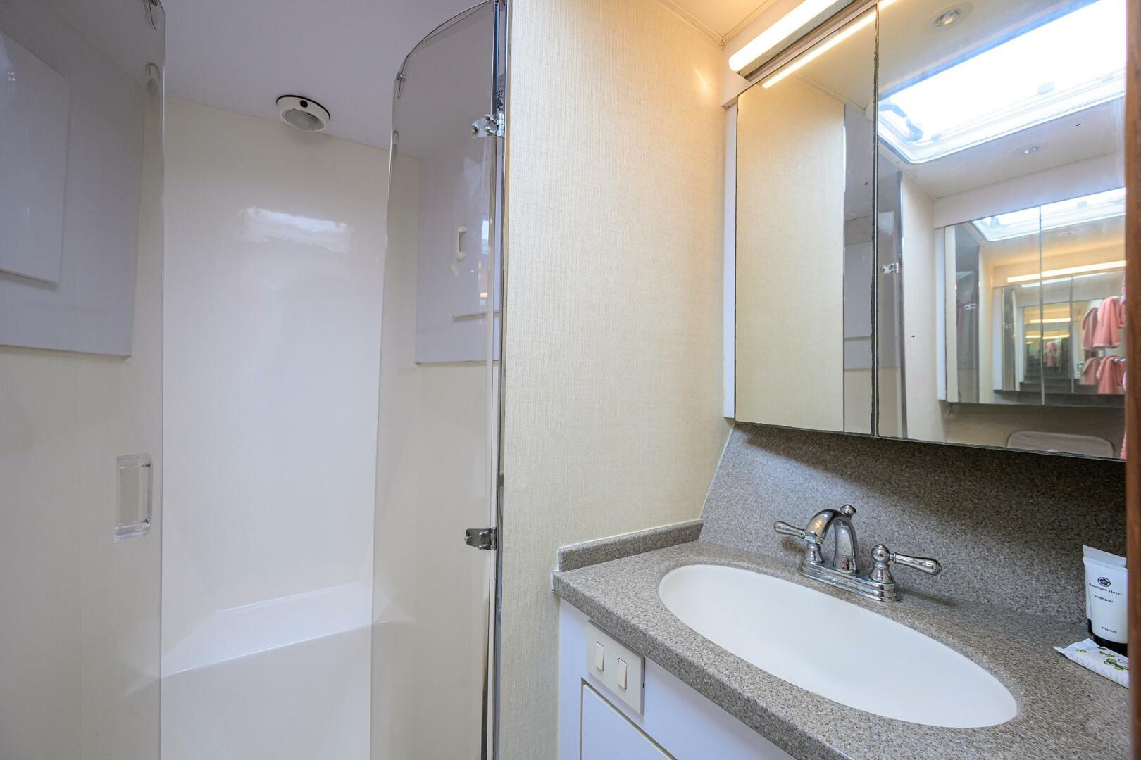 Member’s Only is a classic example of the highly successful Ocean Yachts 56 Super Sportfish, a model respected for her wide beam, generous interior volume, and reliable offshore performance. Powered by twin MAN 1050 HP diesel engines, she delivers strong cruising capability while maintaining the comfort and layout that Ocean Yachts is known for.