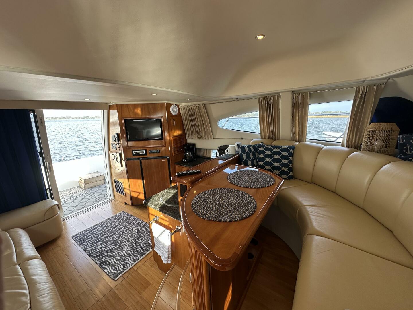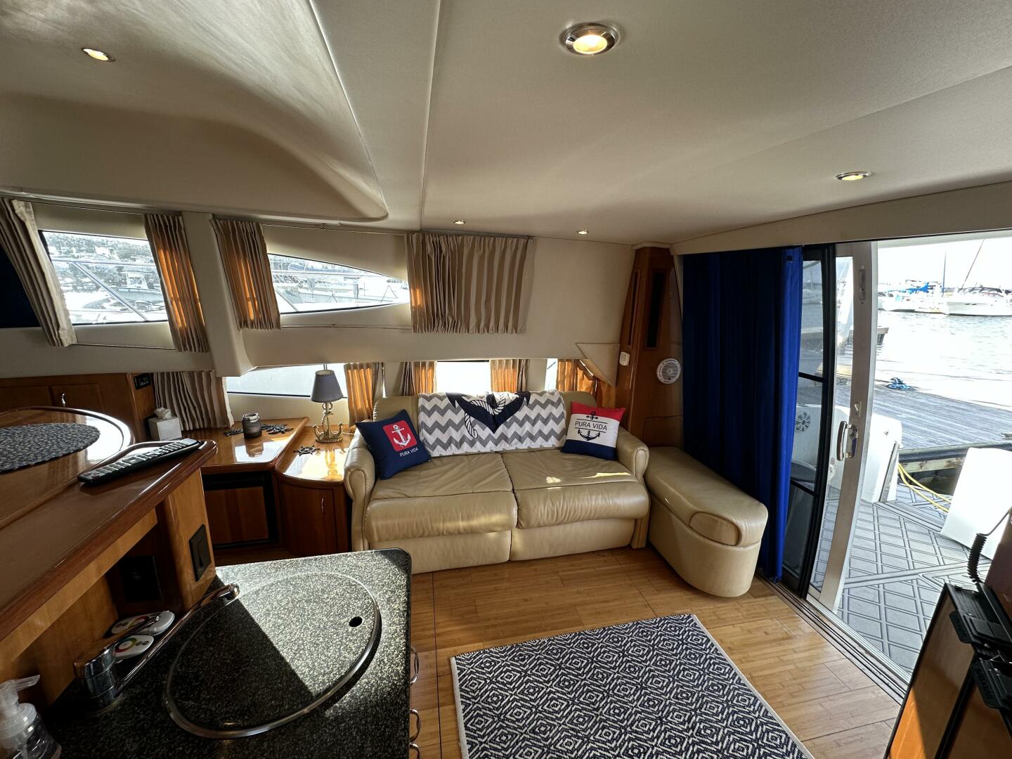 Carver is famous for interior volume, and the 36SS delivers with nearly 7 feet of headroom and an airy, light-filled atmosphere.