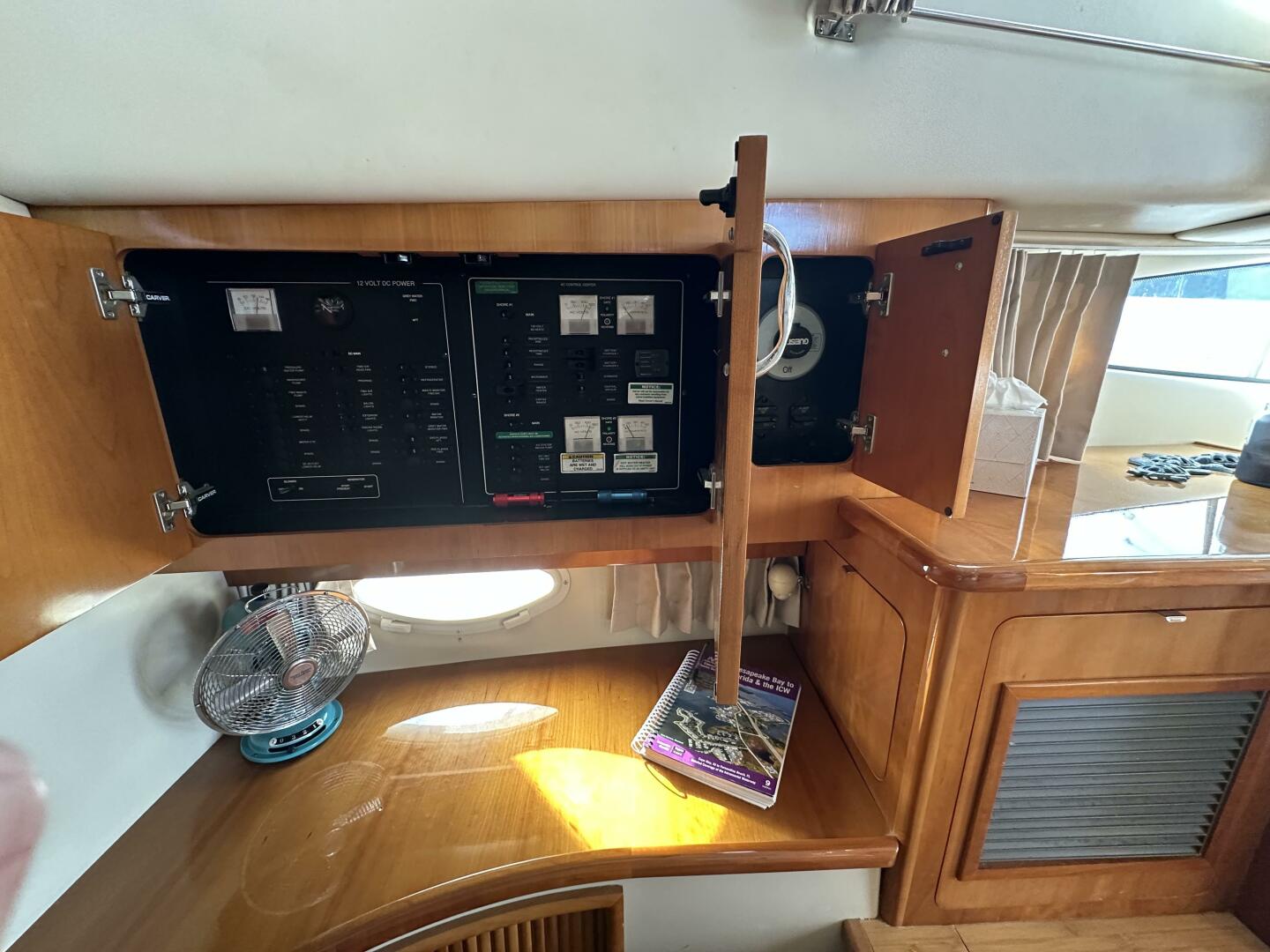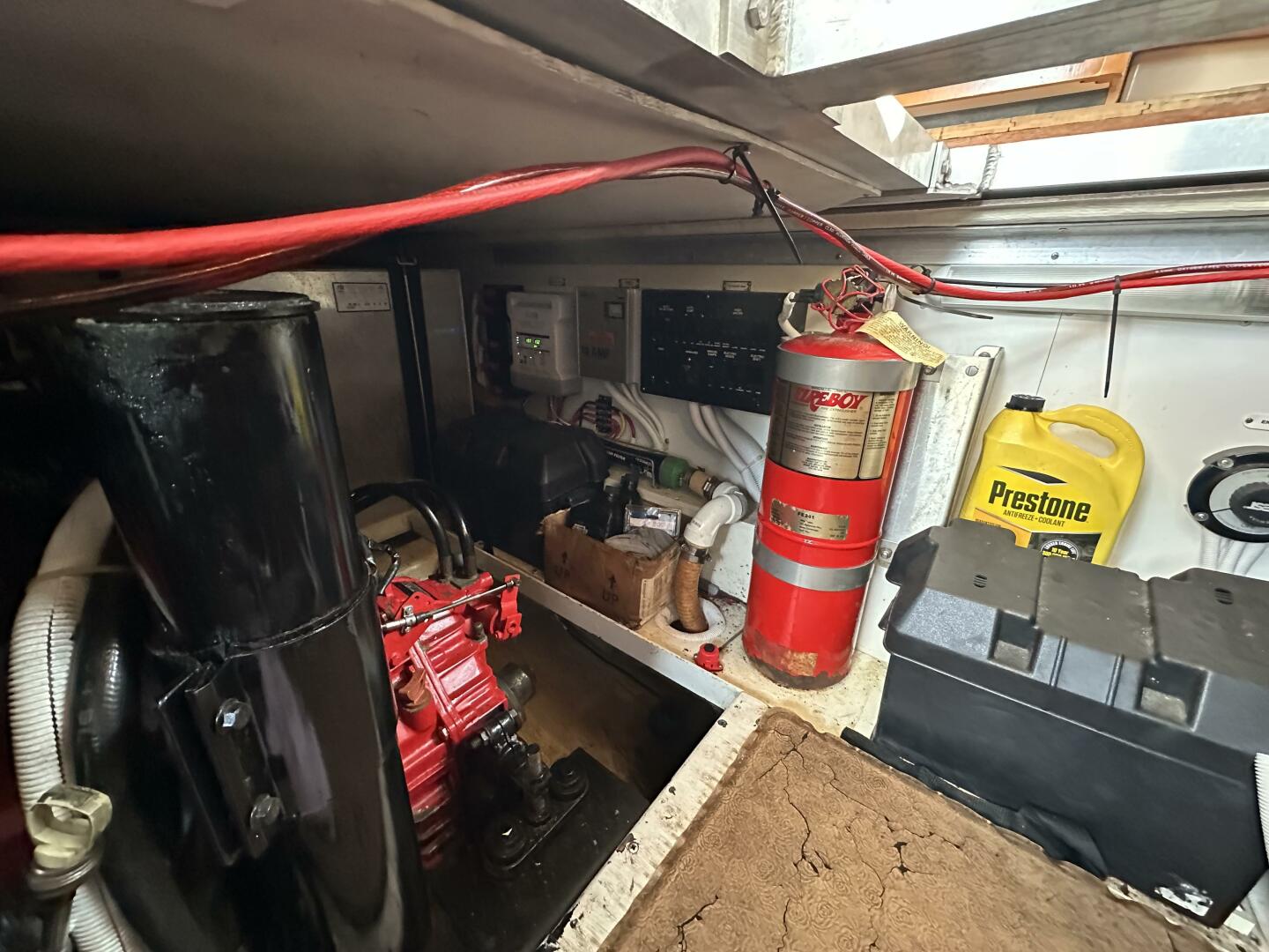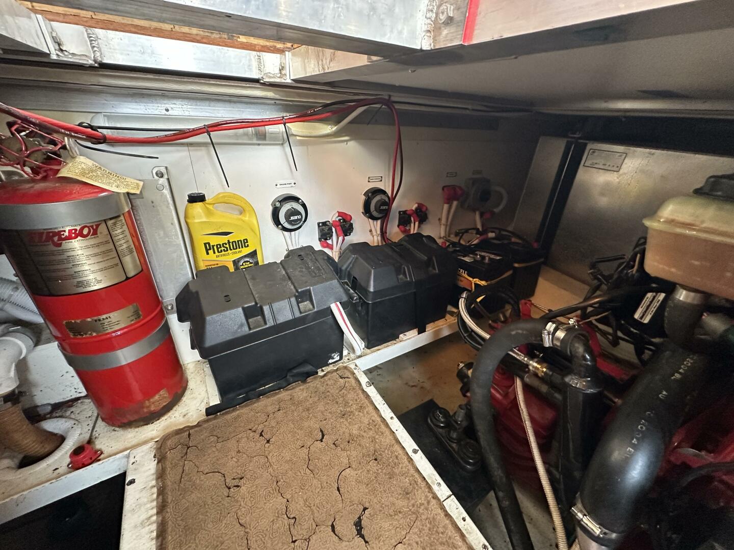 - Mechanical Systems: Features an automatic Fireboy fire suppression system, Dometic/MarinAire reverse-cycle AC/heat (dual zone), and a Reverso oil change system for easy maintenance.