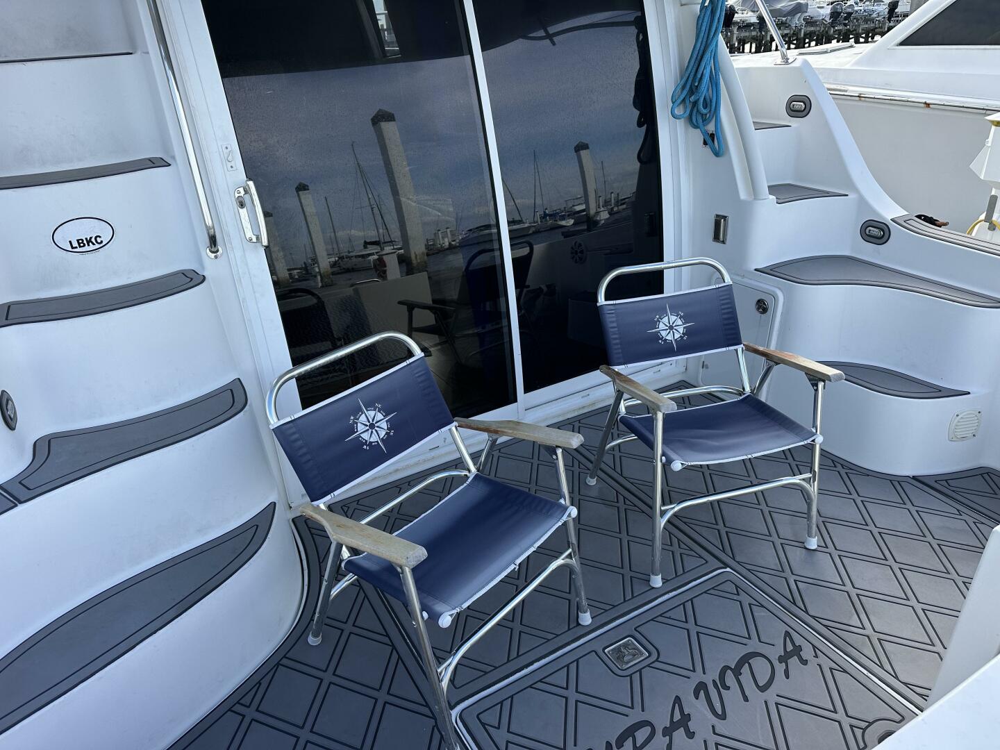 Easily accessed via wide, molded-in fiberglass steps, the bridge is designed for both navigation and socializing.