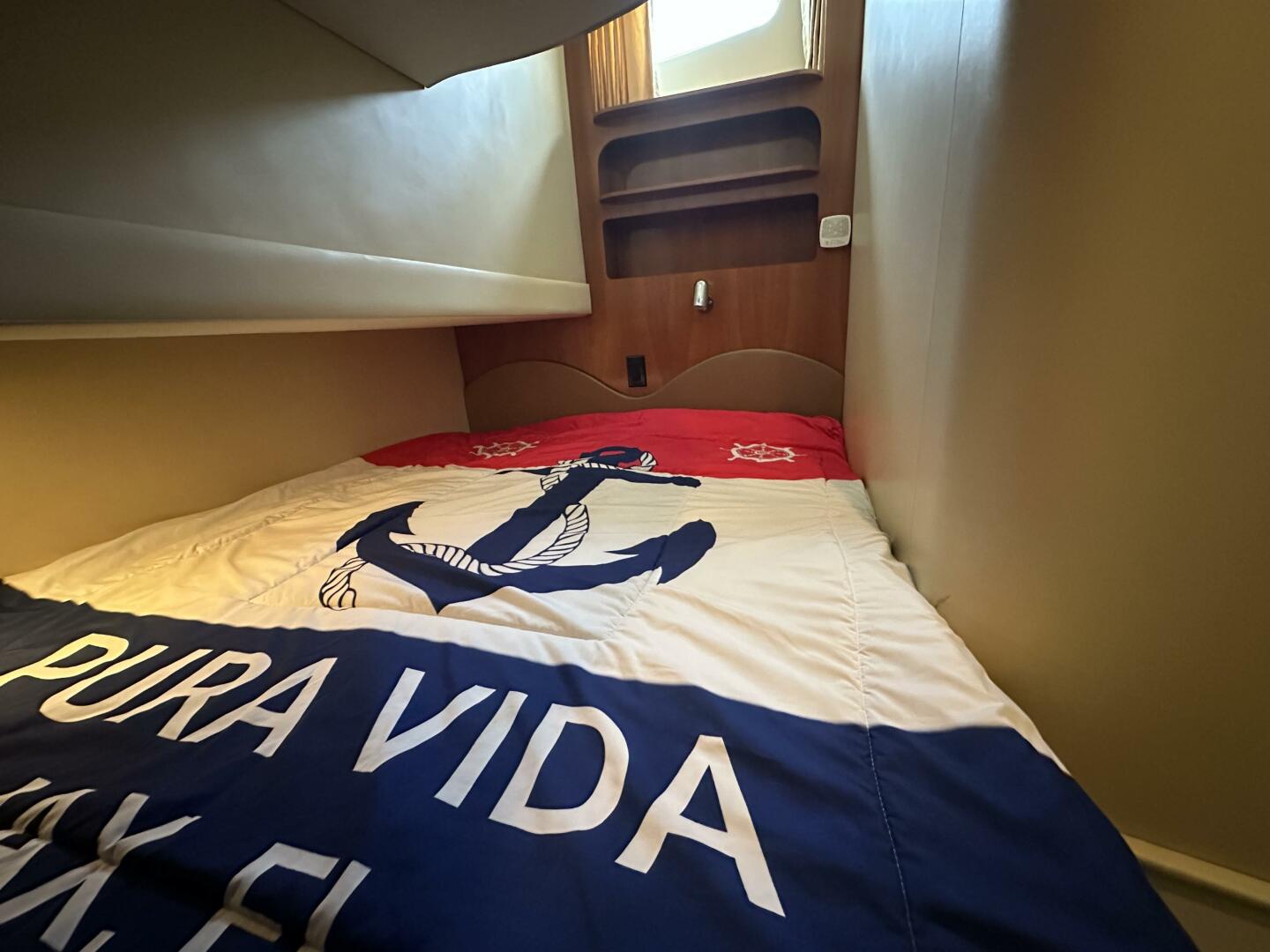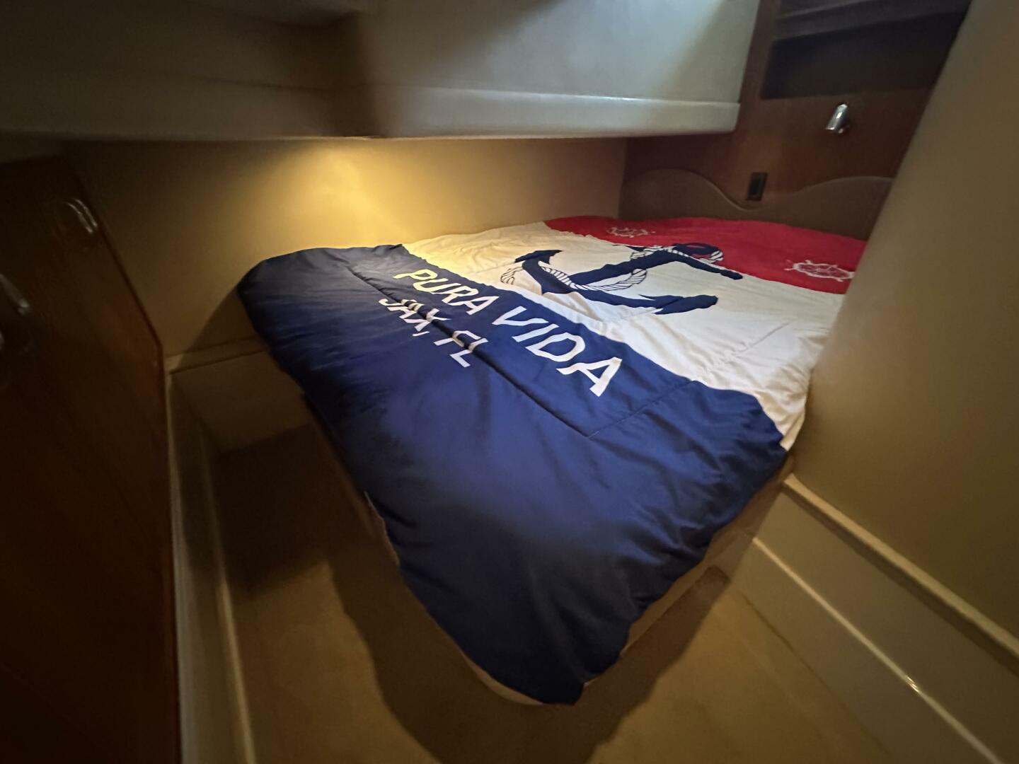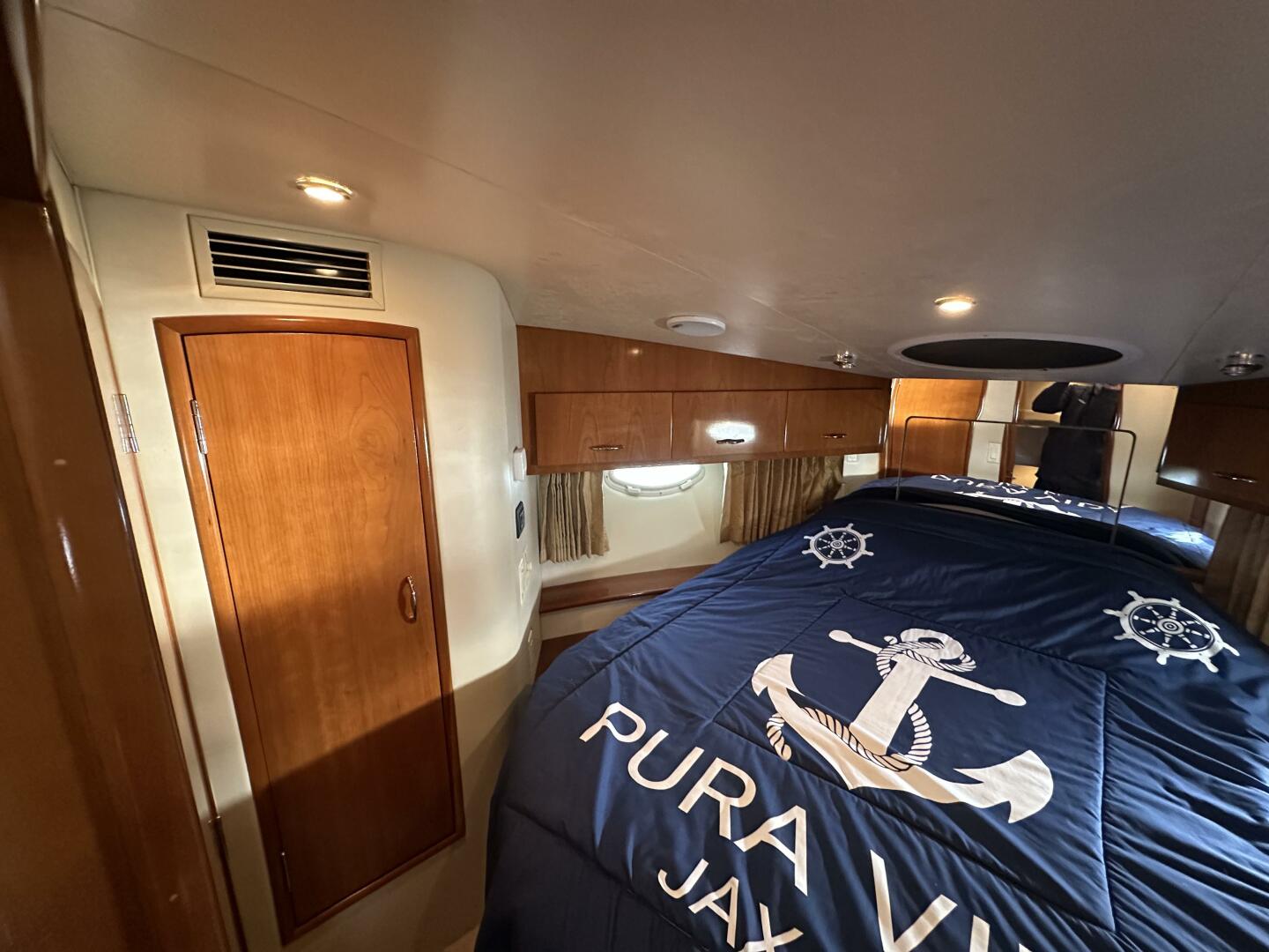 - Master Stateroom: Forward-positioned with a queen-sized island berth, hanging lockers, and private access to the head.