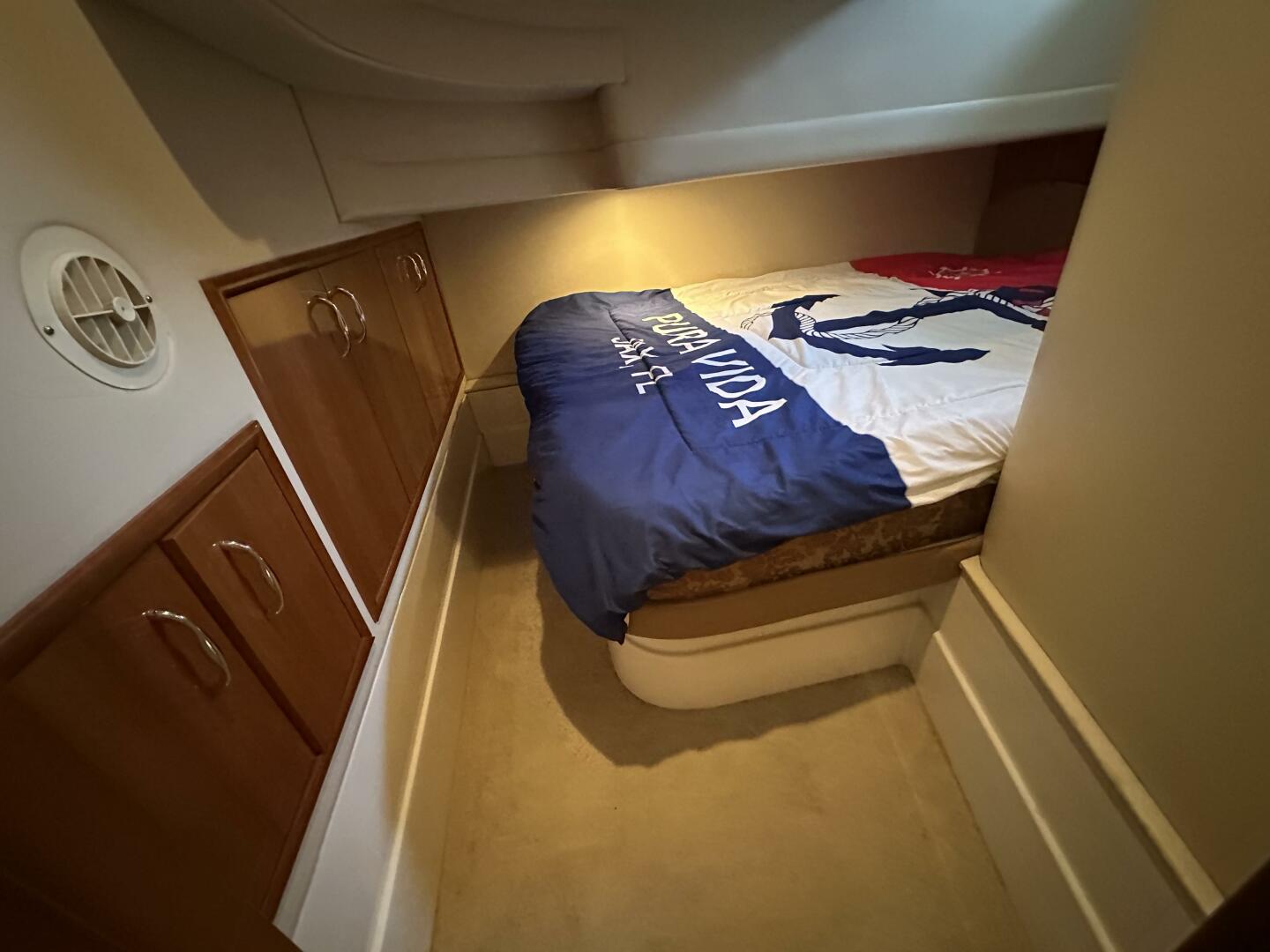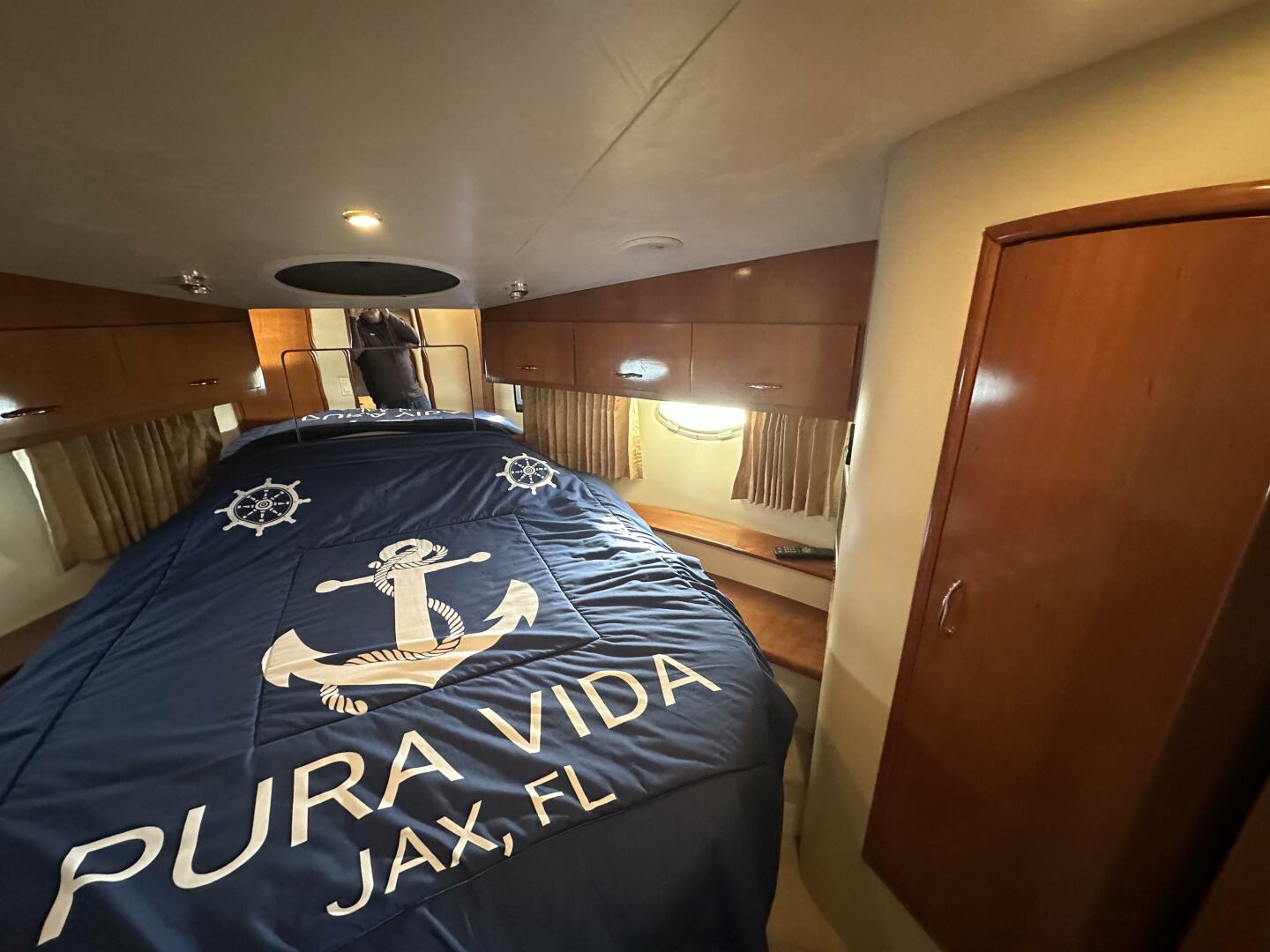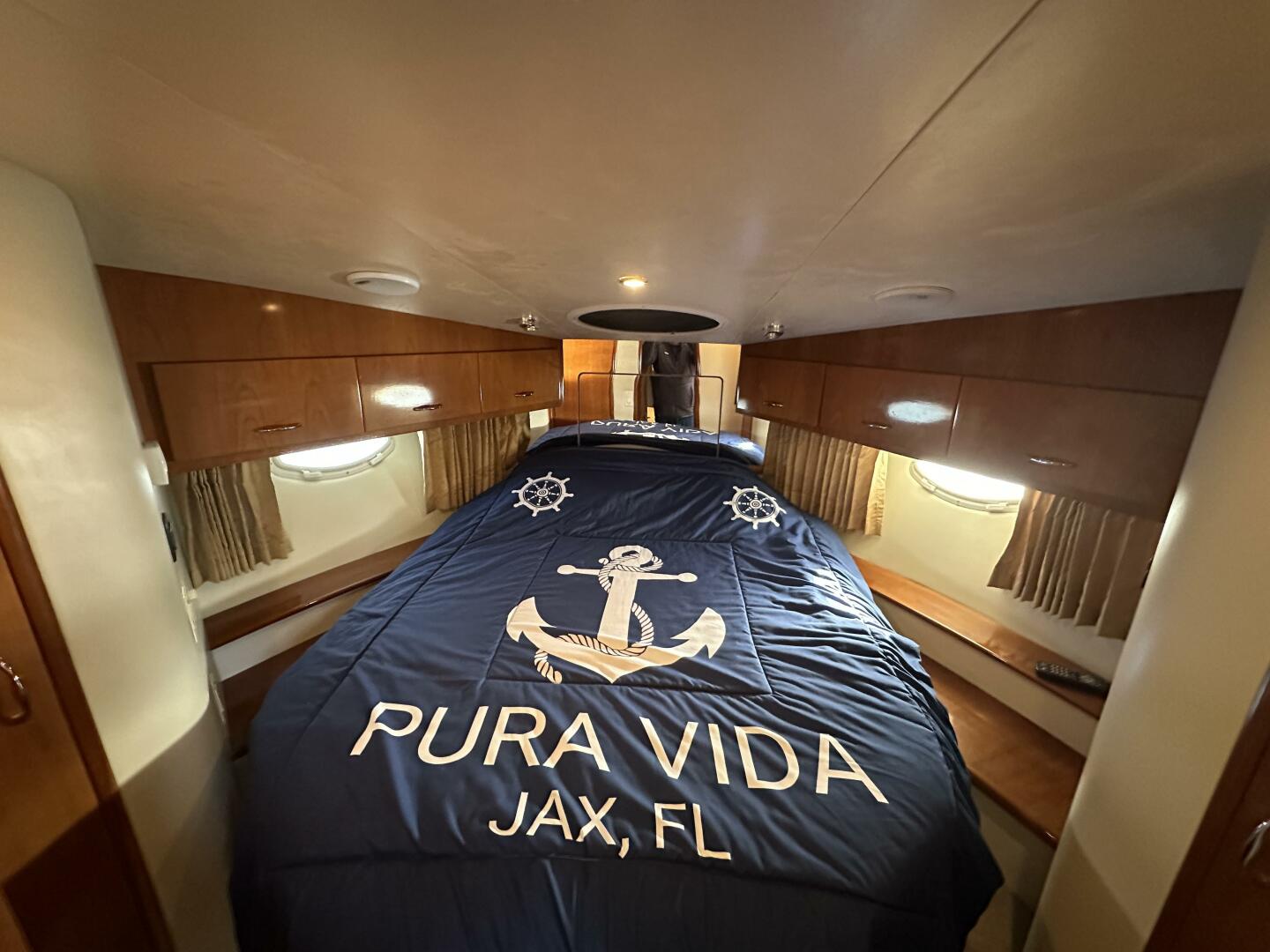 - Master Stateroom: Forward-positioned with a queen-sized island berth, hanging lockers, and private access to the head.