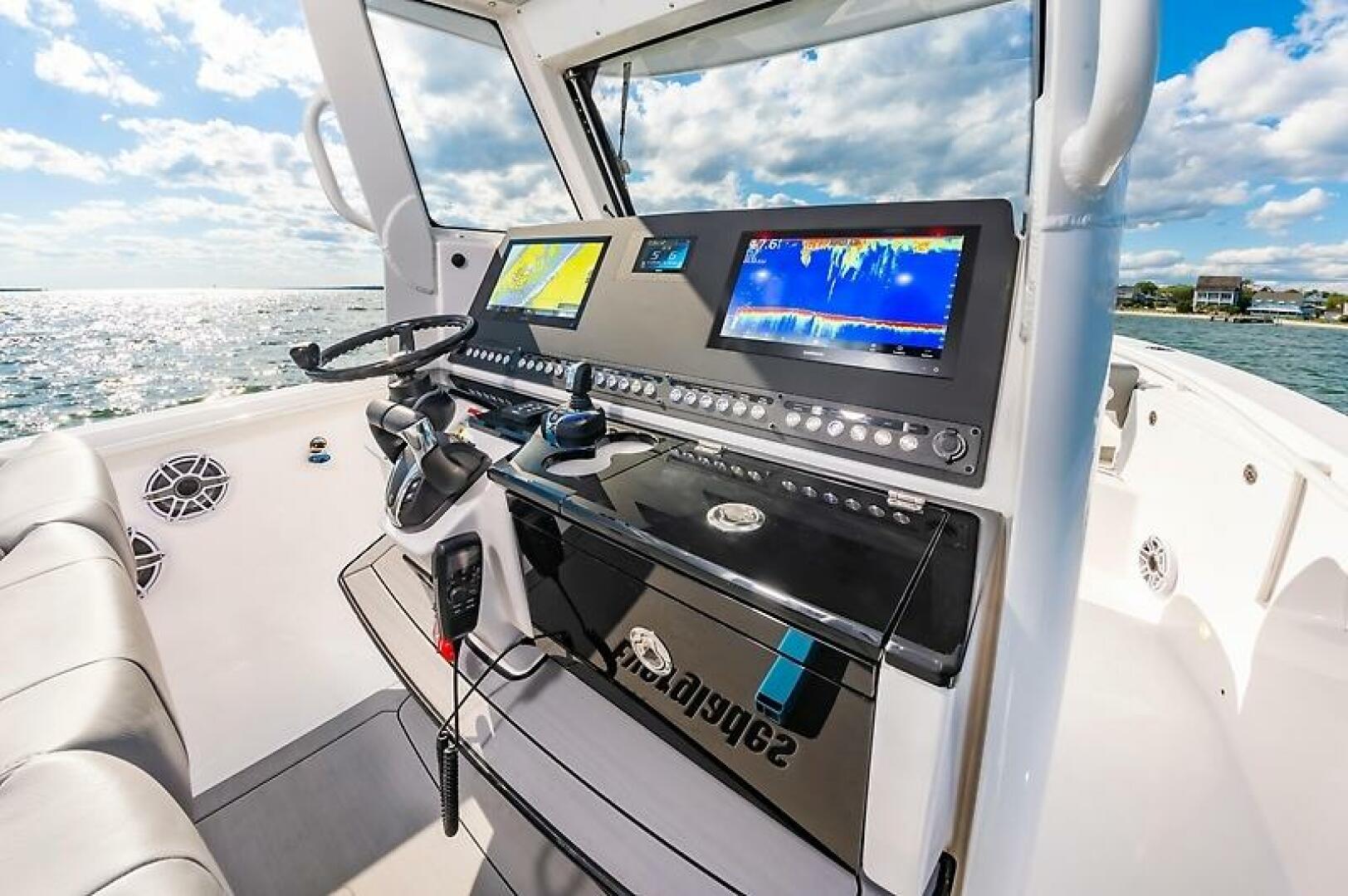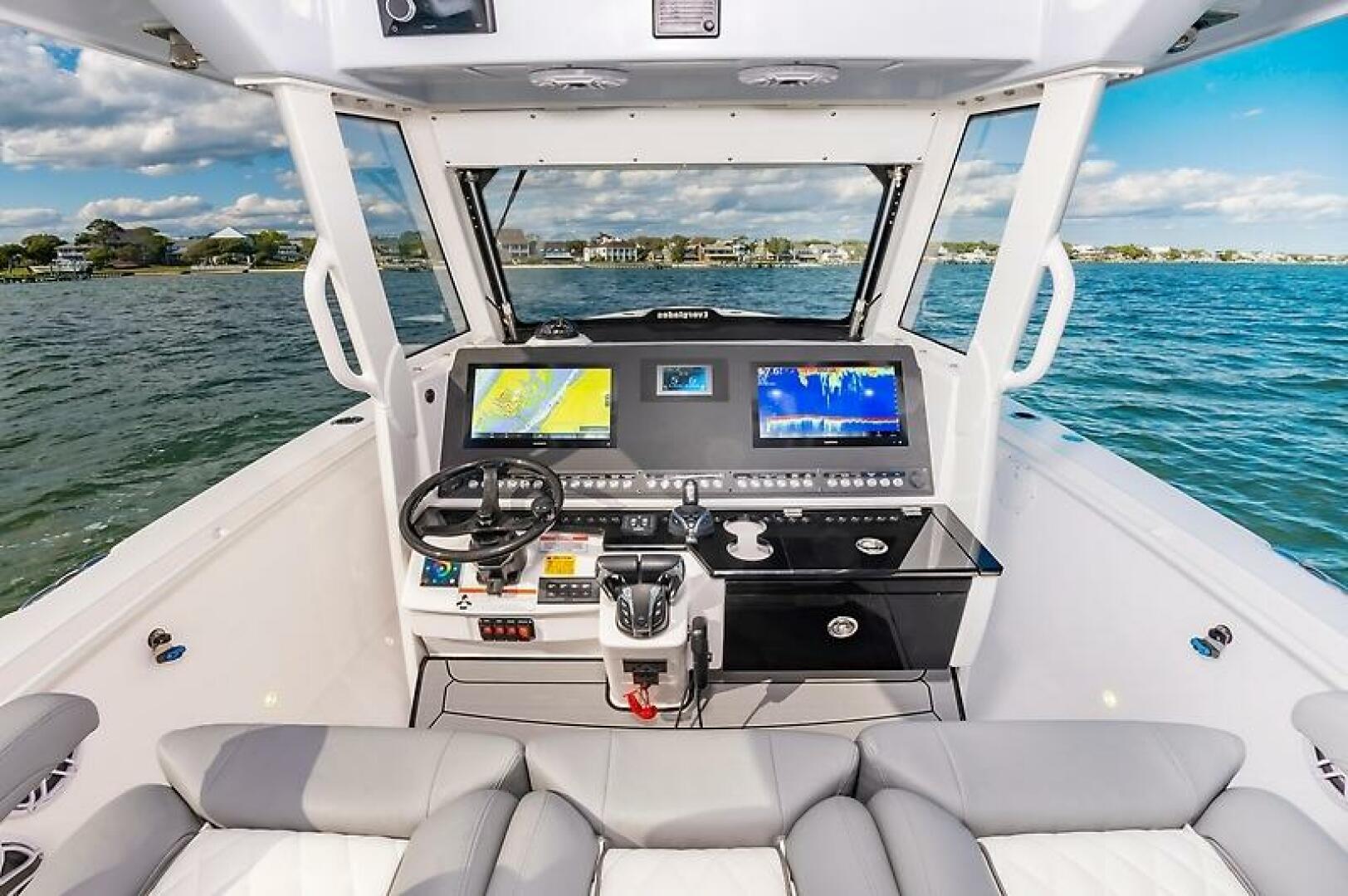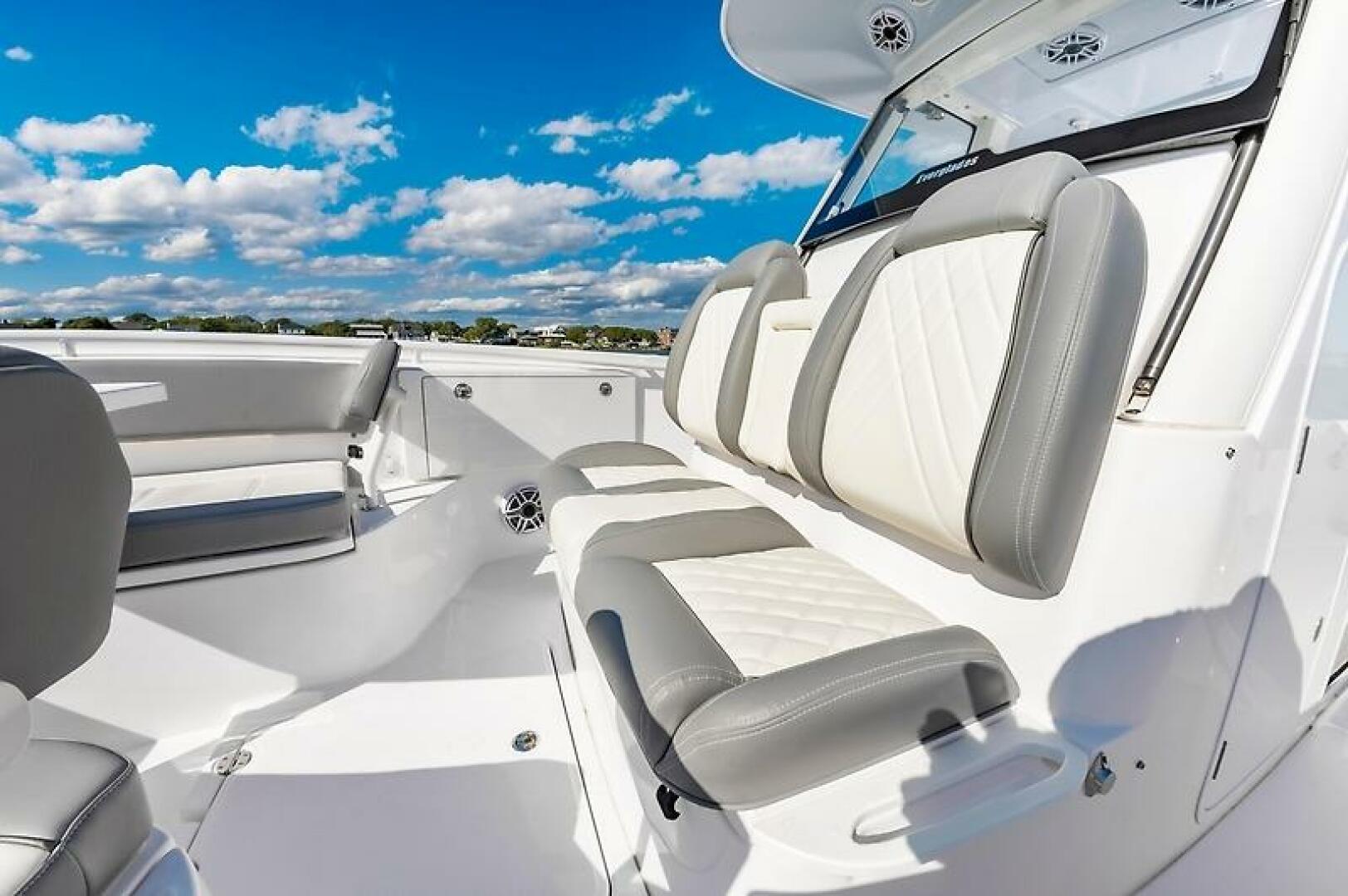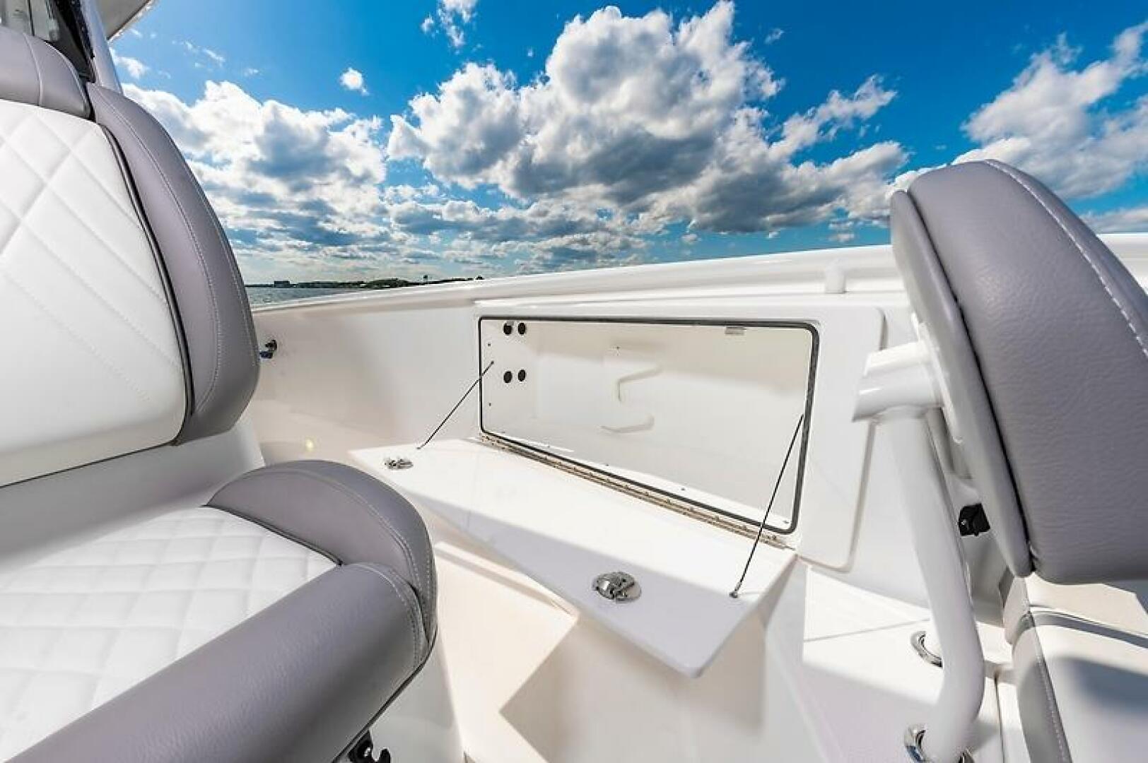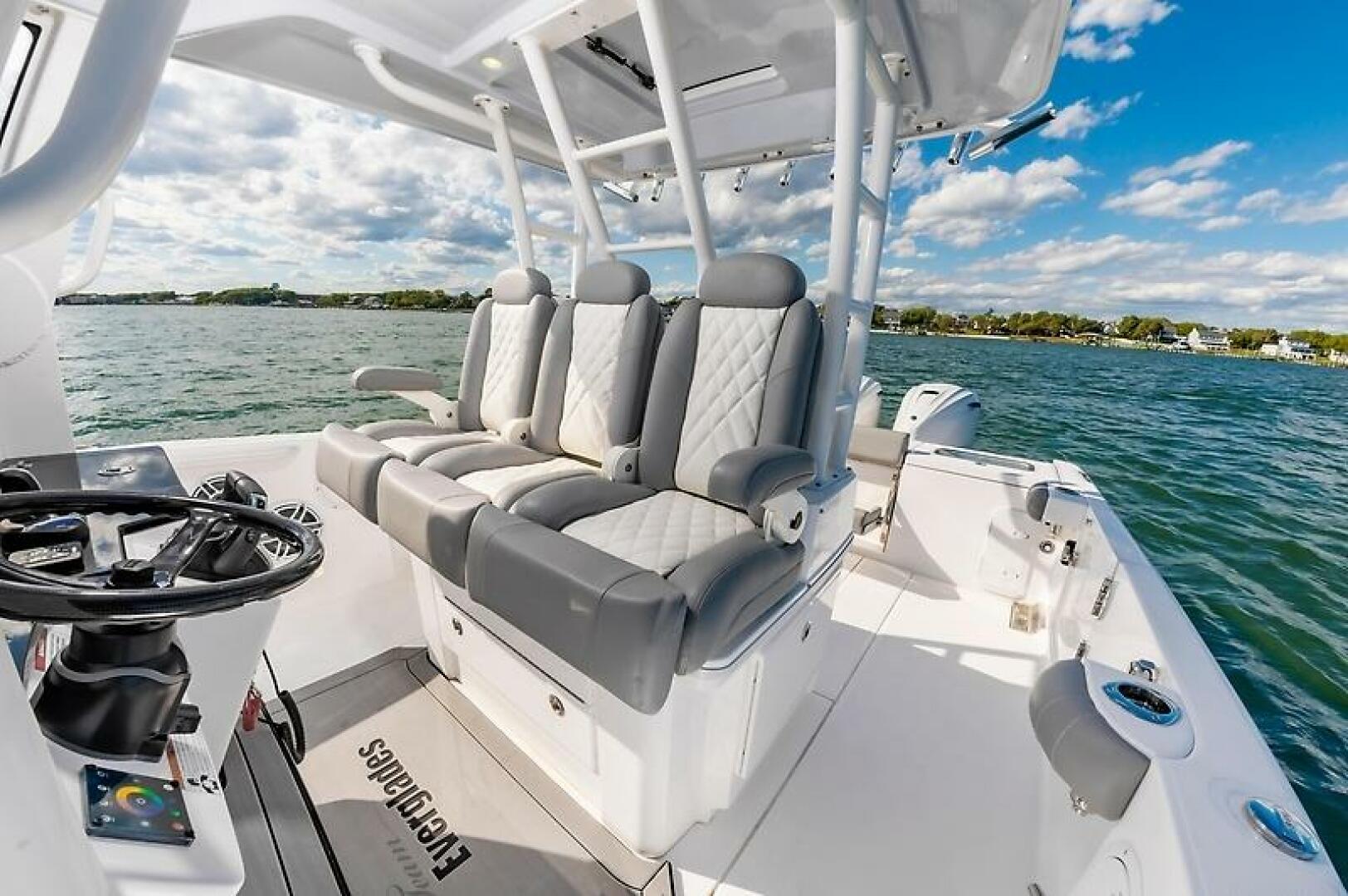 - Triple Pompanette helm seats with armrests and adjustable bolsters