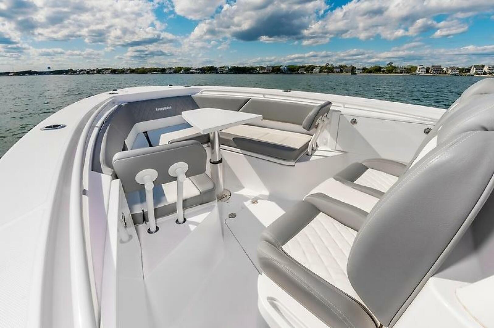 In addition to its abundant amenities, the 335cc continues Everglades Boats commitment to fishability. It's larger console and hardtop, plus the bigger built-in coolers and fishbox storage allow for any fisherman to drop a line with ease. The 335cc's bait prep area and tackle storage were reconfigured to provide a more intuitive experience on the new 335cc.