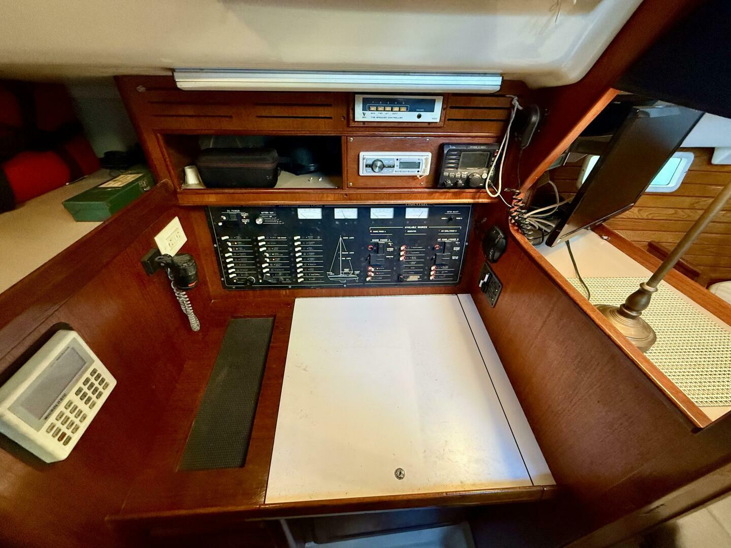 - Dedicated navigation station with chart table, instrumentation panel, and storage