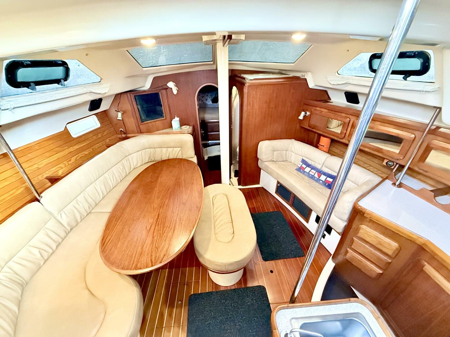 - Teak and holly sole providing warmth, durability, and classic yacht styling