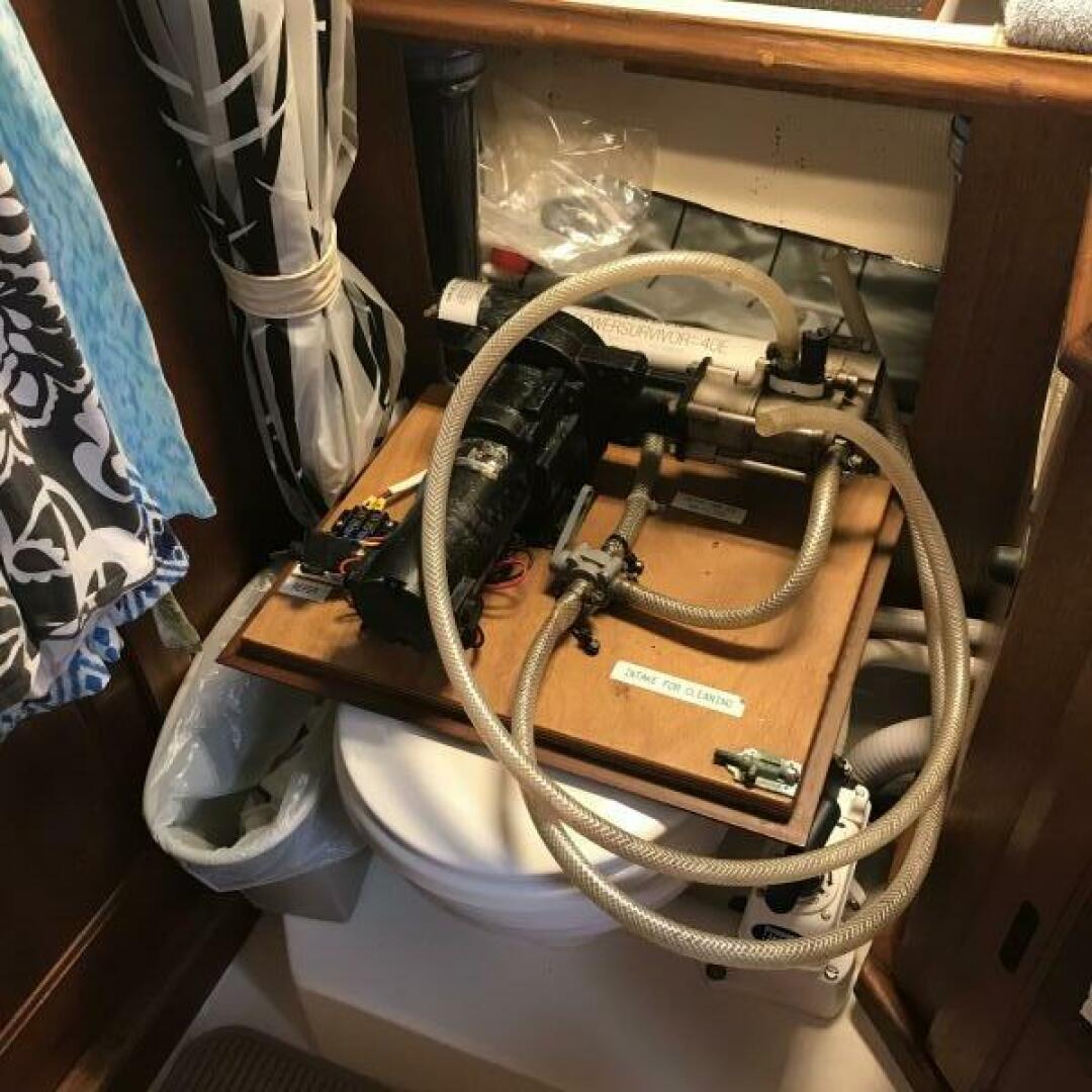 Katadyn 40E watermaker, 1.5 gal/hr, twin filters, using the seawater pump from the