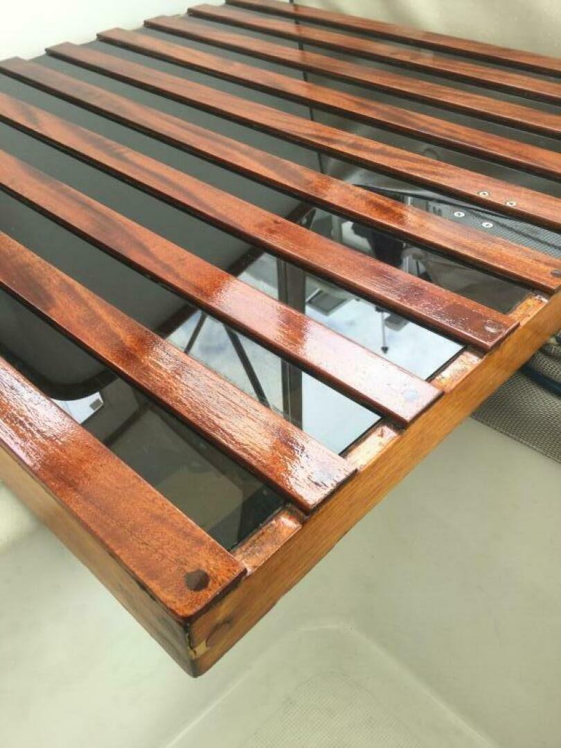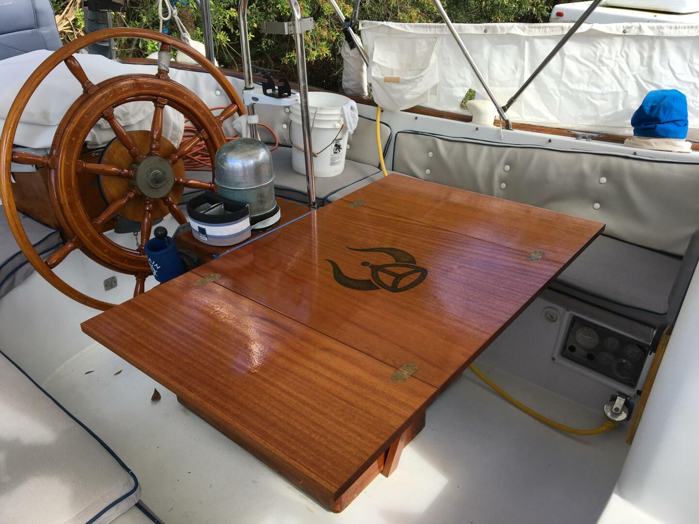 Custom Mahogany cockpit folding table, removable and store-able for sailing