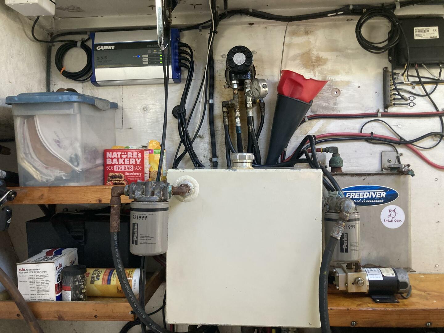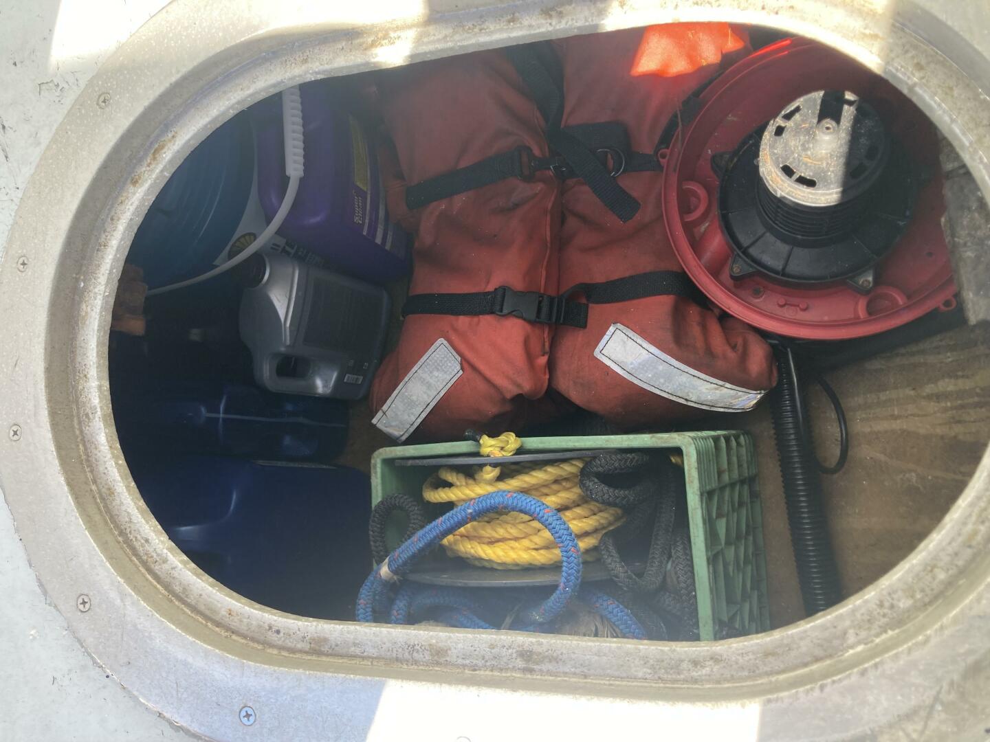 Enjoy the convenience of a 1,000-watt inverter, battery charger, and three AGM batteries for reliable power. The raw water washdown pump, single ram steering, and under-deck storage make operations seamless, while the 4-man Viking liferaft, two EPIRBs, and two survival suits provide peace of mind for your crew.