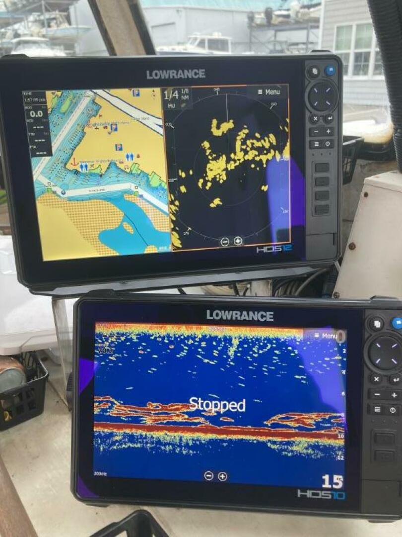 Navigate with confidence using dual Lowrance MFDs (12" & 10") with side scan transducers, Simrad 20" Halo radar, and Simrad AP44 autopilot. Stay informed and connected with XM weather radio, Fusion stereo, and Standard Horizon Matrix VHF—every tool you need for safe, efficient voyages.