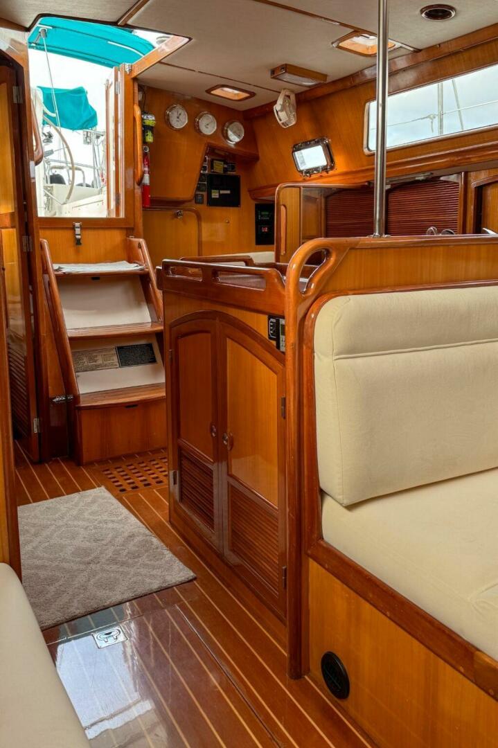 - Three-sided engine access with hinged companionway and lift-out panels port and starboard
