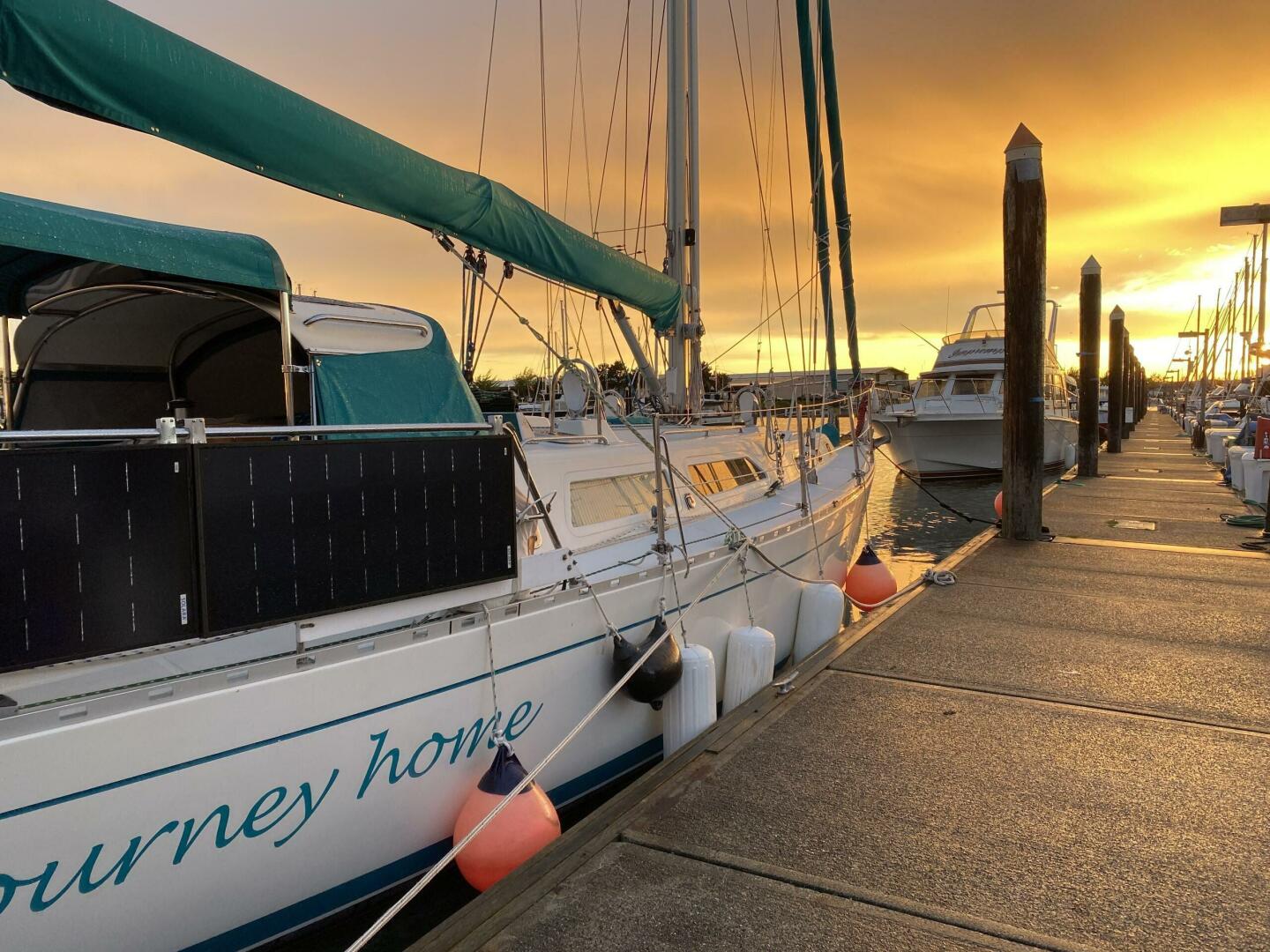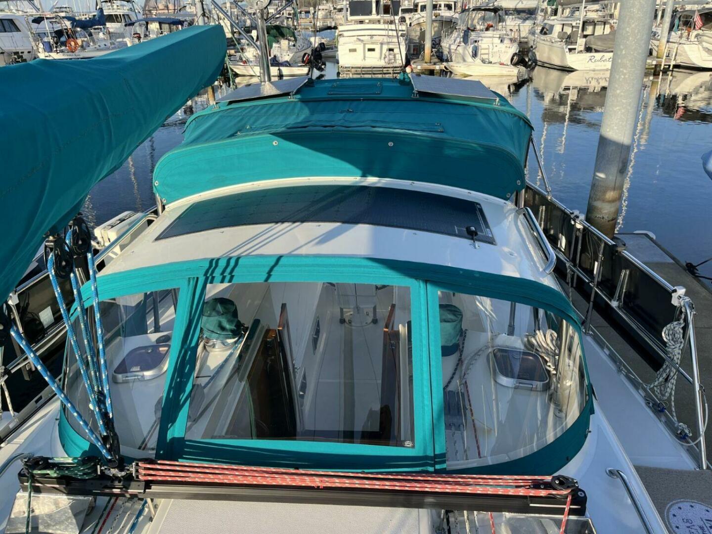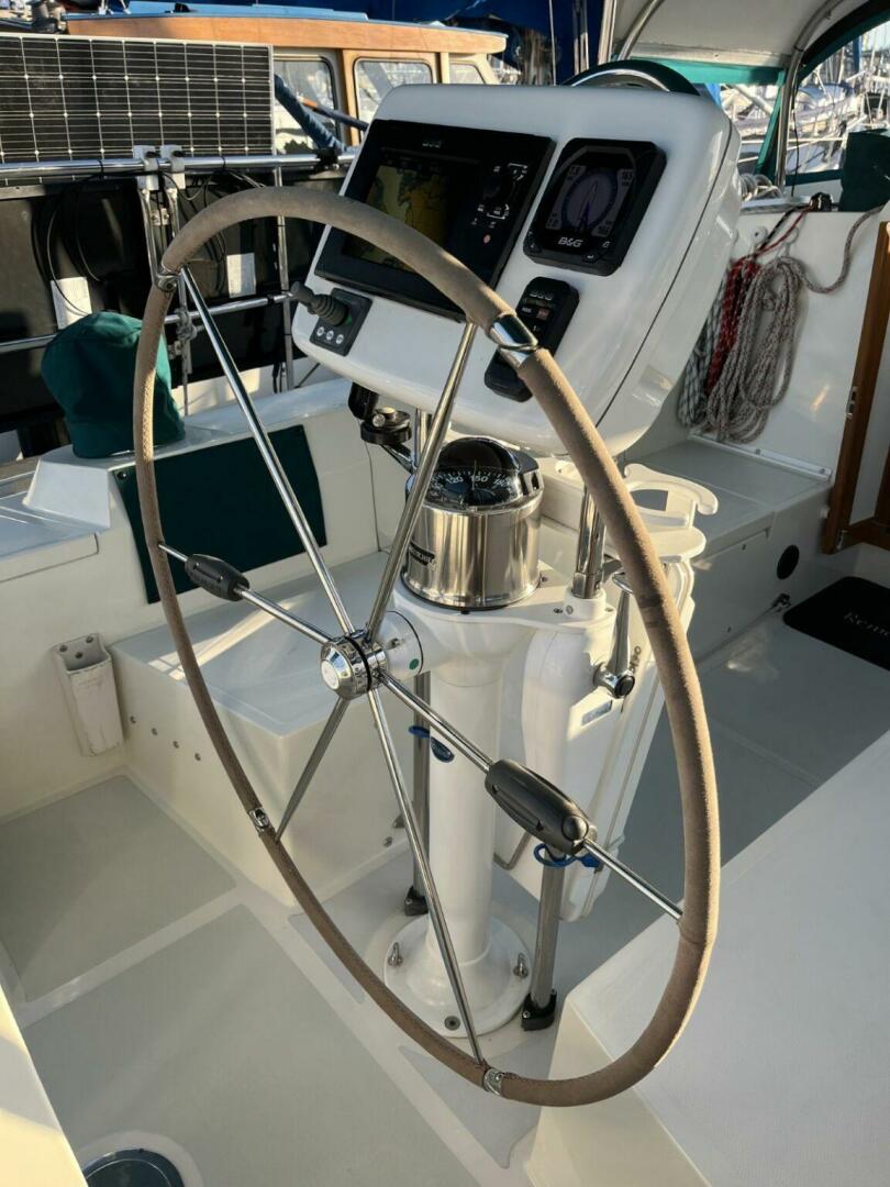 JOURNEY HOME is in exceptional condition and shows as a much newer boat in terms of both her systems and cosmetics. The feeling upon a walk through is “fresh”. Her gelcoat is shiny, canvas is clean and running rigging updated. Below decks, her upholstery appears as new and lockers and storage spaces are clean and tidy. Much care has been lavished upon her by her present owners who have touched nearly every system aboard over the past five years. She is well prepared for cruising the Pacific Northwest or beyond.