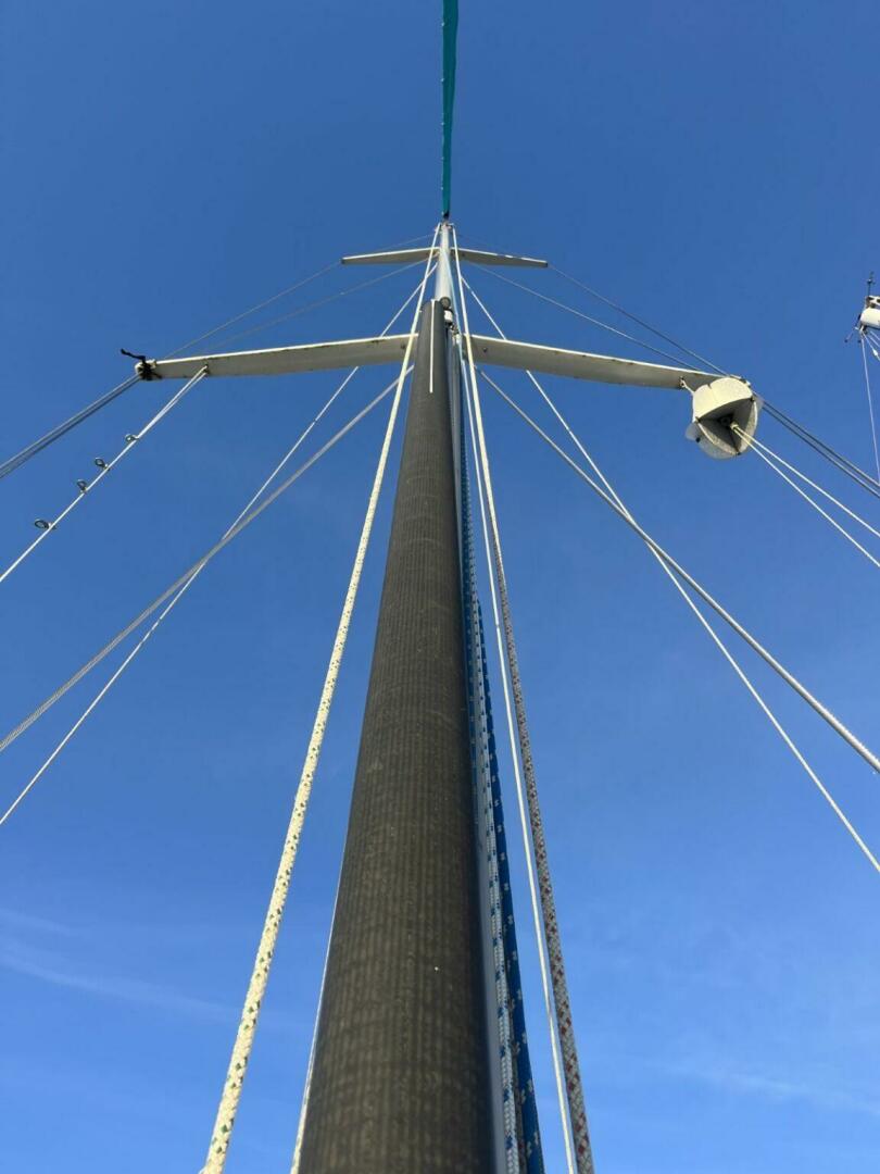 Full offshore sail inventory: mainsail, genoa, solent jib, storm jib, anchor riding sail and asymmetric spinnaker